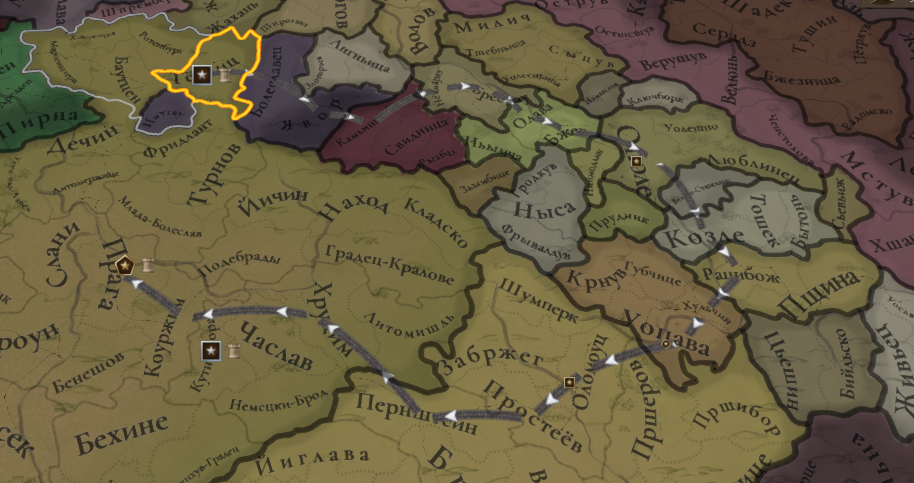 >>50421518 А хуй знает, отображение ебаное. Вроде как из одно провки в другу надо прокладывать отдельную дорогу. Нам надо попасть из сладкого Писека в Прагу, между ними стоит Бенешов. На карте все загажено одним цветом, кажется будто везде дороги есть и все нормально, но на самом деле хуй. Кирпичный цвет отображает просто наличие дорог, но не то что из Писек в Прагу можно проехать через Бенешов т.к. дорога может быть из Писека в Прахень, а из Бенешова в Прагу. Дороги в провках есть, но они не ведут в столицу.