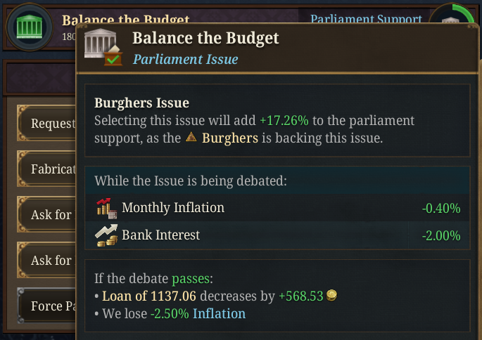 >>50430299 >Убираем максимально привелегии в дно дворянство. Так? Не совсем. Ты всю игру по экономическим причинам будешь усилять горожан, но с их усилением они будут платить меньше налогов и для борьбы с этим тебе придется держать высоким аристократизм в пику плутократизму, а для него нужны привилегии аристократии.