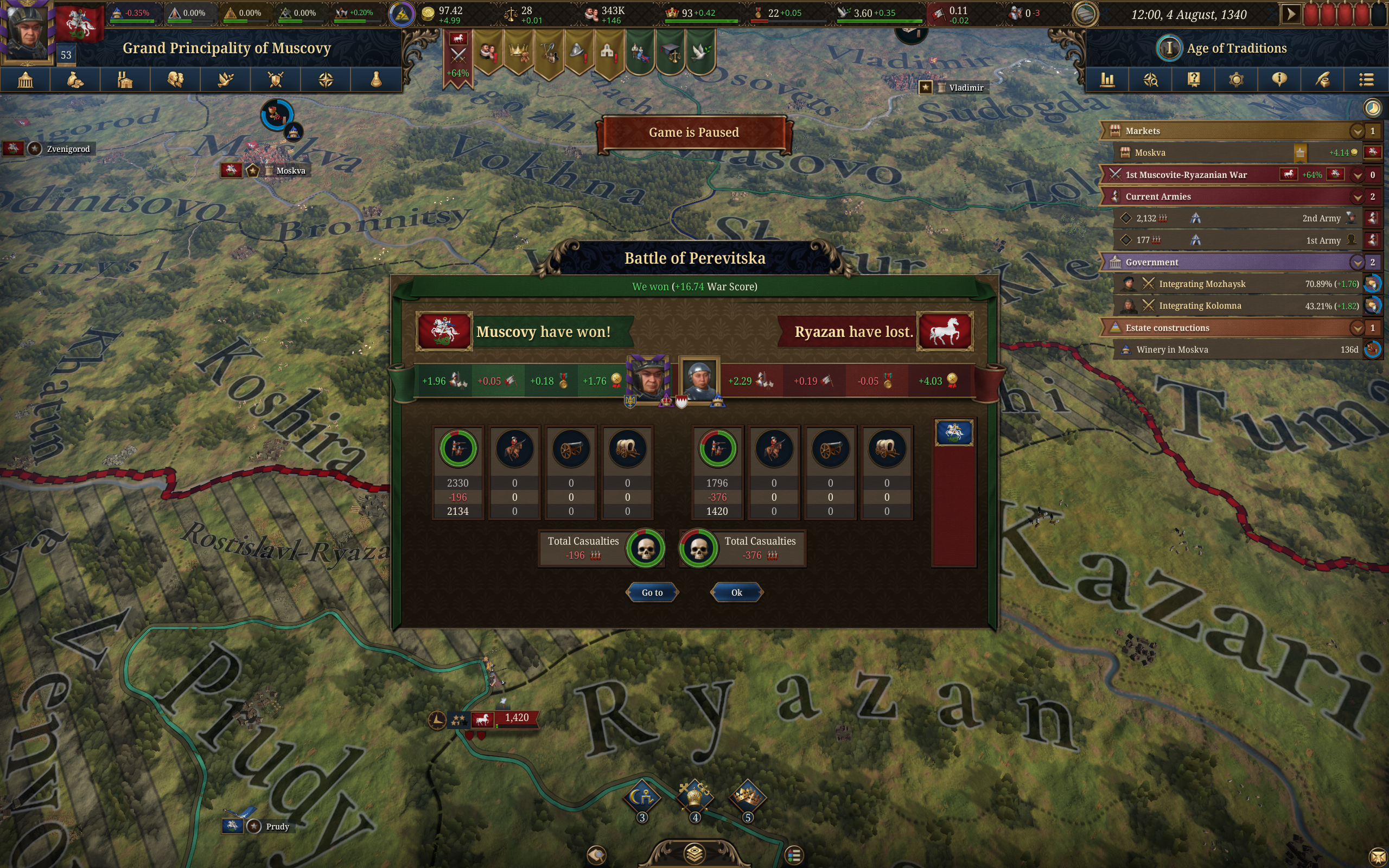 В какой-то момент, у меня все стало хорошо. Я умер, власть отошла сыну пожилому 60 лет, который тоже умер, и все досталось 18 летнему внуку, у которого было военное образование. А у японии было все плохо, они там друг сдругом перевоевали, тенноу сменился, войск мало. Ну я напал и отдал несозданное герцогство. Создал его, еще повоевал немного выпиздывая оттуда говернантов этих ебучих, чтобы каунти титулы тоже у меня были. В общем получил я главное, землю с культурой ямато. Начался новый гринд, принятие с их культурой. Там базово уже десятка накапала, начал советником собирать, да всякие события делать. В какой-то момент амур напали на них, я не стал помогать, думал проебут, но они каким-то образом захватили надавав мне штрафа к культуре и ненависти домов. Но ничего, я собрал 80 (спасибо их традициям) и реформировался в ямато-акан-айн культуру.