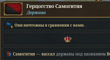 >Есть разница какого вассала делать для скорейшего присоединения - просто вассала или феод? Напишу разницу целом. Если назначать главой вассала супруга/супругу, то вторая половинка последует за ним и покинет твою державу (муж покинет место в твоём совете если его жену назначил главой вассала) Скорость интеграции зависит от размеров вассала и прочих модификаторов вроде культуры населения вассала. В идеале делать 1 провинция = 1 вассал для ускорения интеграции. Если у вассала отличная от тебя культура, то сразу через дипломатию прожимаешь Культурное принуждение(религия не влияет на скорость интеграции, но вассала так же можно принудить к смене) Вассалы дают Сюзерену престиж и 20% ускорения распространения институтов(Сюзерен тоже даёт модификатор 20% вассалу). Феоды получают 50% скорости растространения институтов от Сюзерена, но не ускоряют в ответ. У Феодов правящая семья Сюзерена и они наследуют твои законы и имущественные привилегии. Например, создавать за византию феоды глупая идея, поскольку наследуют коррупцию в поместьях. Военные силы Вассалов и Феодов по отношению к Cюзерену считаются отдельно(влияет на лояльность, бунты, желание независимости?).