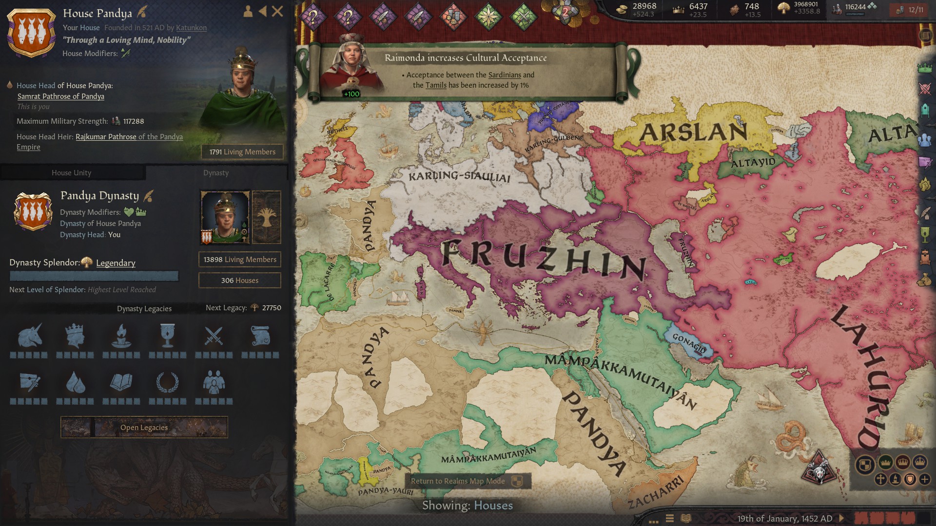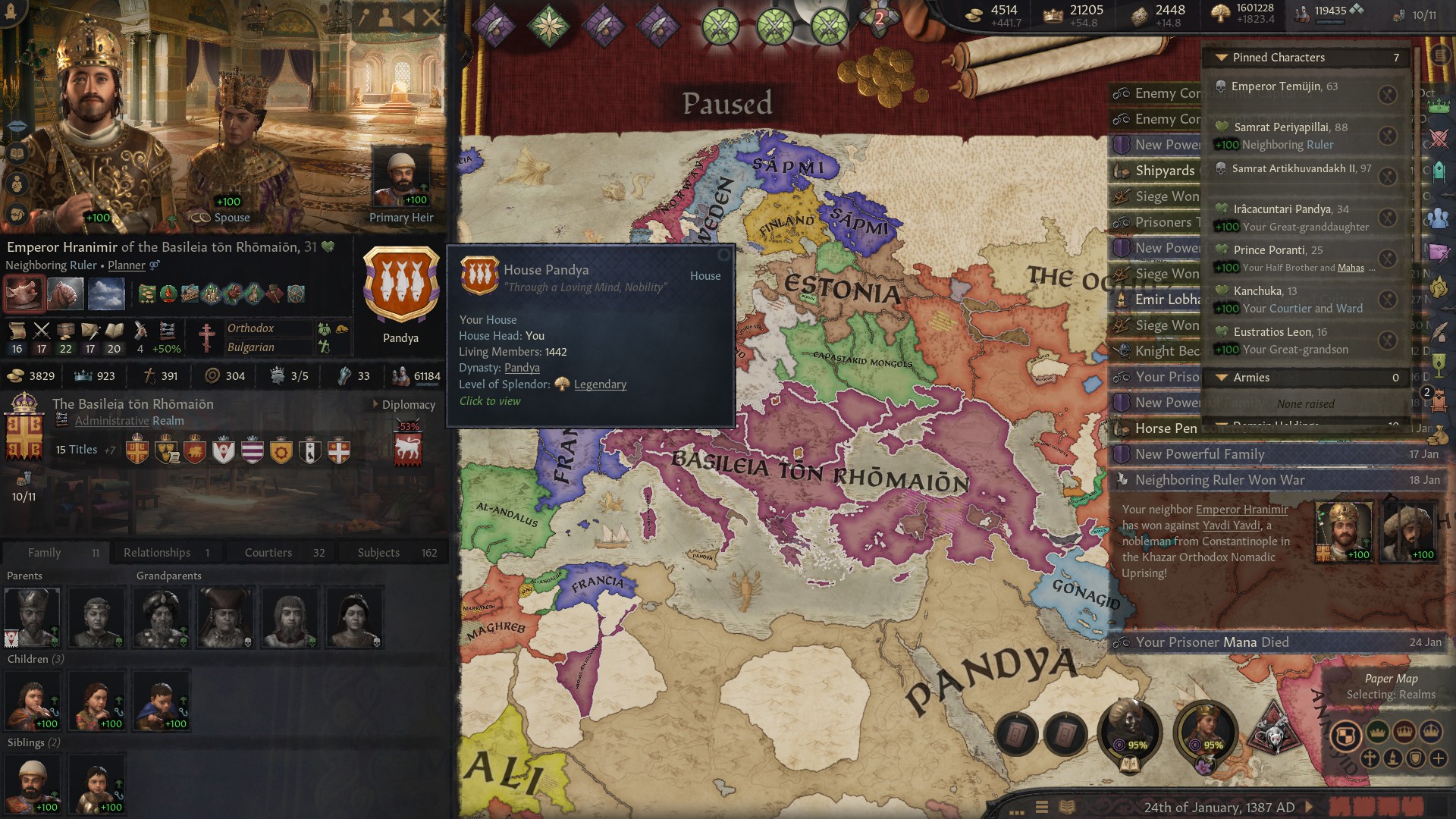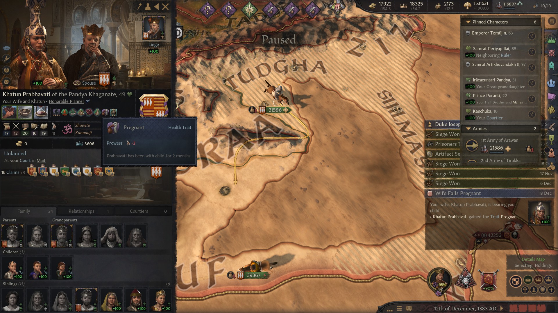 Начал играть с самой ранней эпохи за черного путешественника из культуры акан. Выбор почти рандомный, довольно далеко что главное, но еще у них есть культура что женщины тоже рыцарями могут быть, что имба, ты и головную боль с поддержанием количества этих рыцарей убираешь, так еще очень часто они и по статам сильнее. Бонусом идут рейдерство и лучники более крутые. Дальше было путешествие в японию длительностью в 20 лет. За это время смог найти много хороших компаньонов, друзей. Даже византийскую любовницу, с которой смог заделать несколько детей-бастардов. Было довольно весело, особенно через пустыню пробираться, где припасы улетают в ноль через каждые три клеточки. Но в итоге добрались.