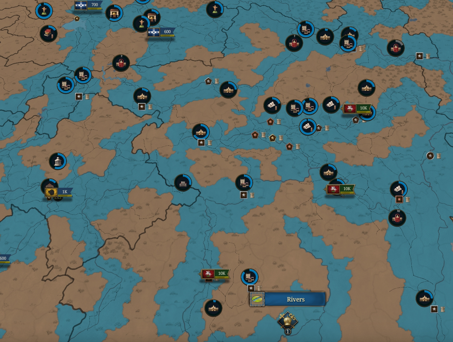 Стратку по дорогам вижу такую. От столицы строим дороги к бейлифам, от бейлифов ко всем провкам вокруг, опционально дороги между бейлифами для удобства вождения армии. Бейлифы располагает так чтобы получался максимально возможный контроль вокруг бейлифов.