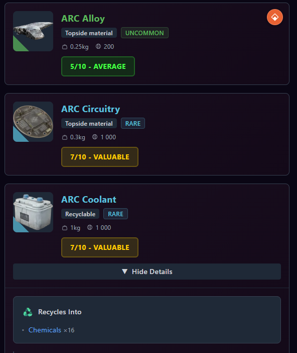 >>50428911 (OP) >https://topside.tools - зарубежная энциклопедия по игровым предметам, можно просматриваться компоненты для крафта и т.д. А в чем суть-то сайта? Он просто показывает во что предмет разбирается, но ничего про то, для какого крафта он нужен, в каком квесте он необходим и етс. Я чего-то не понимаю?
