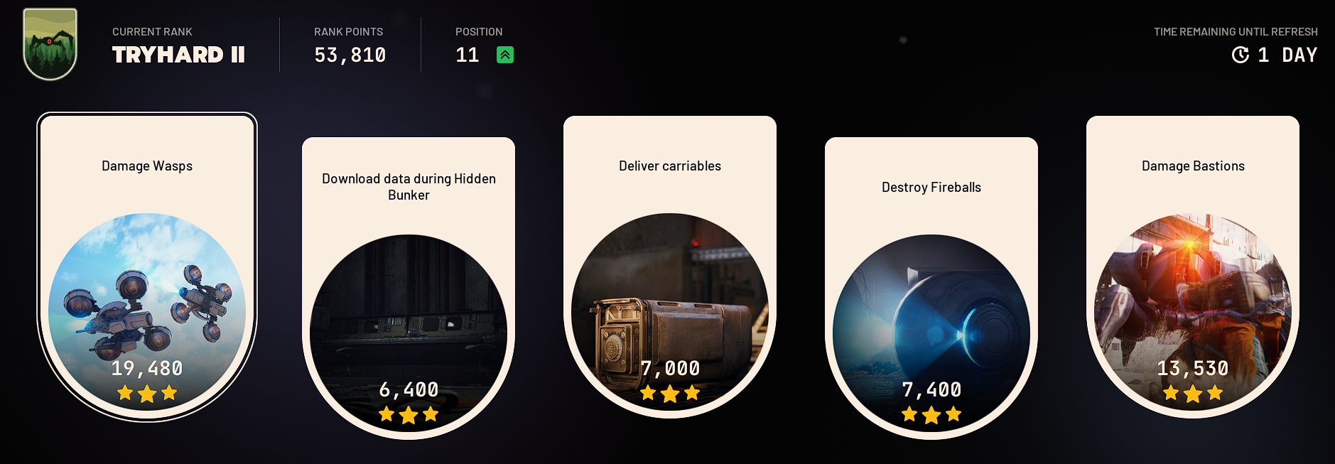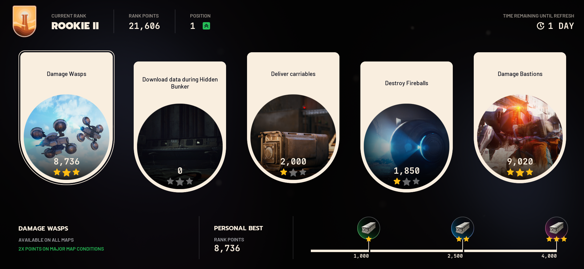 я чет не понял как испытания рейтинговые работают. вот я ящики на тыщу натаскал (два, по одному за раунд) а дальше планочка не повышается. это мне типа каждую вылазку надо по несколько ящаков сдавать чтобы дальше считало или как?