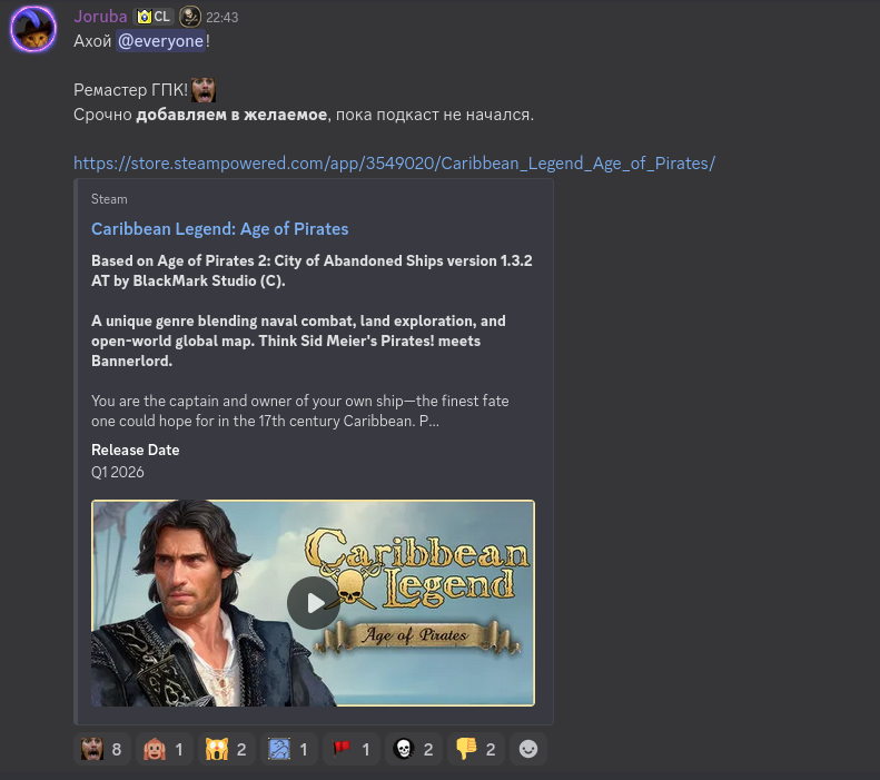 Рацпредложение ОПу: сделать тред не корсарским, а вообще посвящённым играм на пиратскую тематику. Три с половиной инвалида тут семёнят, выясняют, сколько гирек нужно, чтобы полукулеврину до кулеврины растянуть