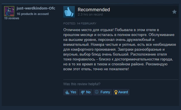 Это тебе к Дыромадре, он же собирал целую попопчку с накрученными отзывами, которые старательно к ролику собирал, всё грозился подать жалобу в Стим, призывал это и других делать.