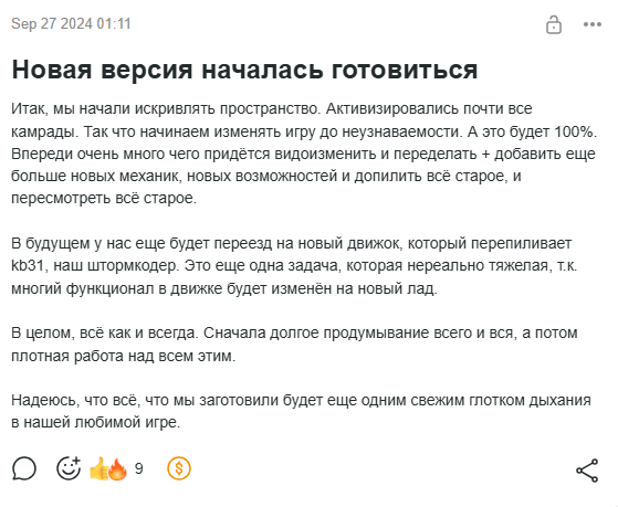Негусто. Нового управления, кстати, нет. На 2025-й, и уже почти 2026-й год КШП это единственный проект, который предлагает управление из 00-х. Видимо это теперь будет объявлено не багом, а фичей, той самой, которая отличает "Жарупкины новоделы" от тру-народного беслпатного проекта за идею.