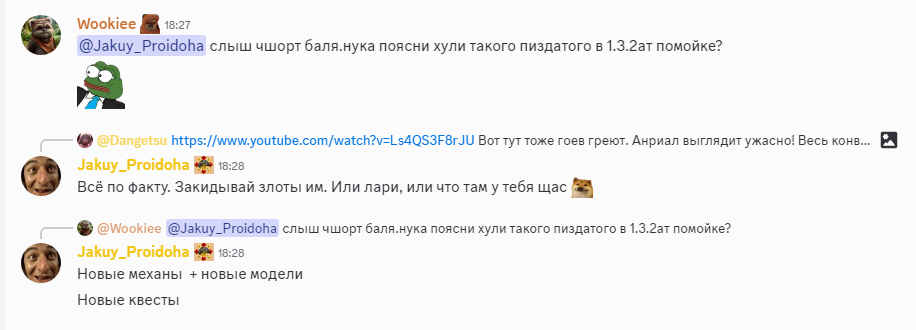 >как вообще люди могут играть в кал после того как Джоруба неоднократно говорил А ты говорил, что большие ладошки - это похуй, но ведь все мы знаем, что это не так, верно? Всем насрать, что и когда говорил Джоруба, если КЛ сейчас единственный играбельный аддон по корсарам. Люди просто играют и получают кайф, а у тебя каждый день очередной сеанс поедания говна в дискорде.