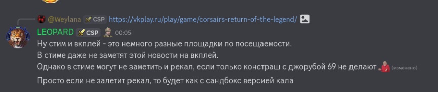 А как Алекс должен "спокойно" конкурировать в международном Стиме, если он де-факто на ПКМ себе пенсию зашибает. Или БМС настолько крутые, что и Дисней через хер кинуть могут? А в ВКПлее у него форменная монополия на Корсары.