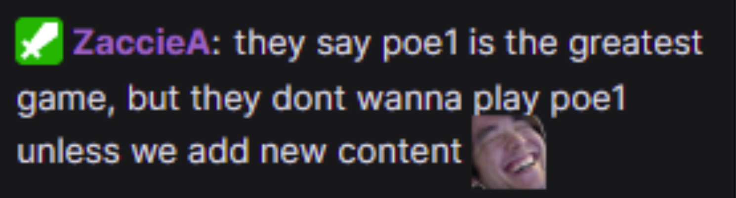 как того траподрочера из дискорда зовут который разраб пое он еще год назад верно опдметил что пое1питеки хотят лигу в пое1 говне но при этом они не играют в пое1 говно марк очевидно это тоже видит и понимает что для пое1 говна нет смысла стараться делать лижки они все ровно в них не играют так что сорре но все для пое2 и немного человекочасов на сдачу на пое1 все приоритеты расставлены и вы сами в этом виноваты что не играете в пое1 но требуете патчей на лут и классных лиг так вы играйте хотя бы и будет но вы не играете а все ровно требуете