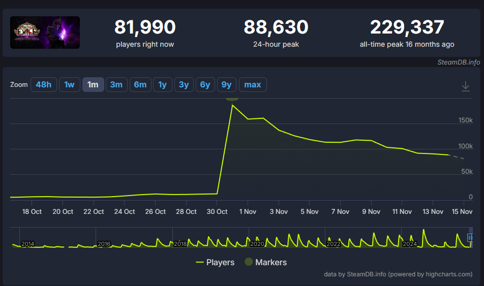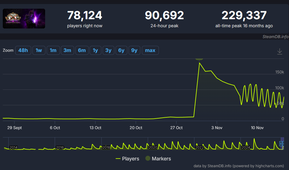 вы просто воспринимаете пою через призму расхайпленых 200к онлайна а для пои нормальный онлайн это 50к и даже если вобще не завозить новых лиг и калтента то стабильные 10к в стиме будут а это для игры в этом жанре дохуя