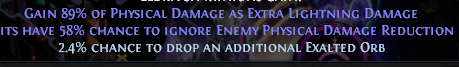 Fixed a bug where effects from the player that converted monster Physical Damage to an element were also increasing the amount of damage from that element based on the percentage of Physical Damage converted and the monster's level. This would have affected Elementalist's Shaper of Flames Passive, Pyroshock Clasp Unique Belt, and Kaom's Binding Unique Belt.