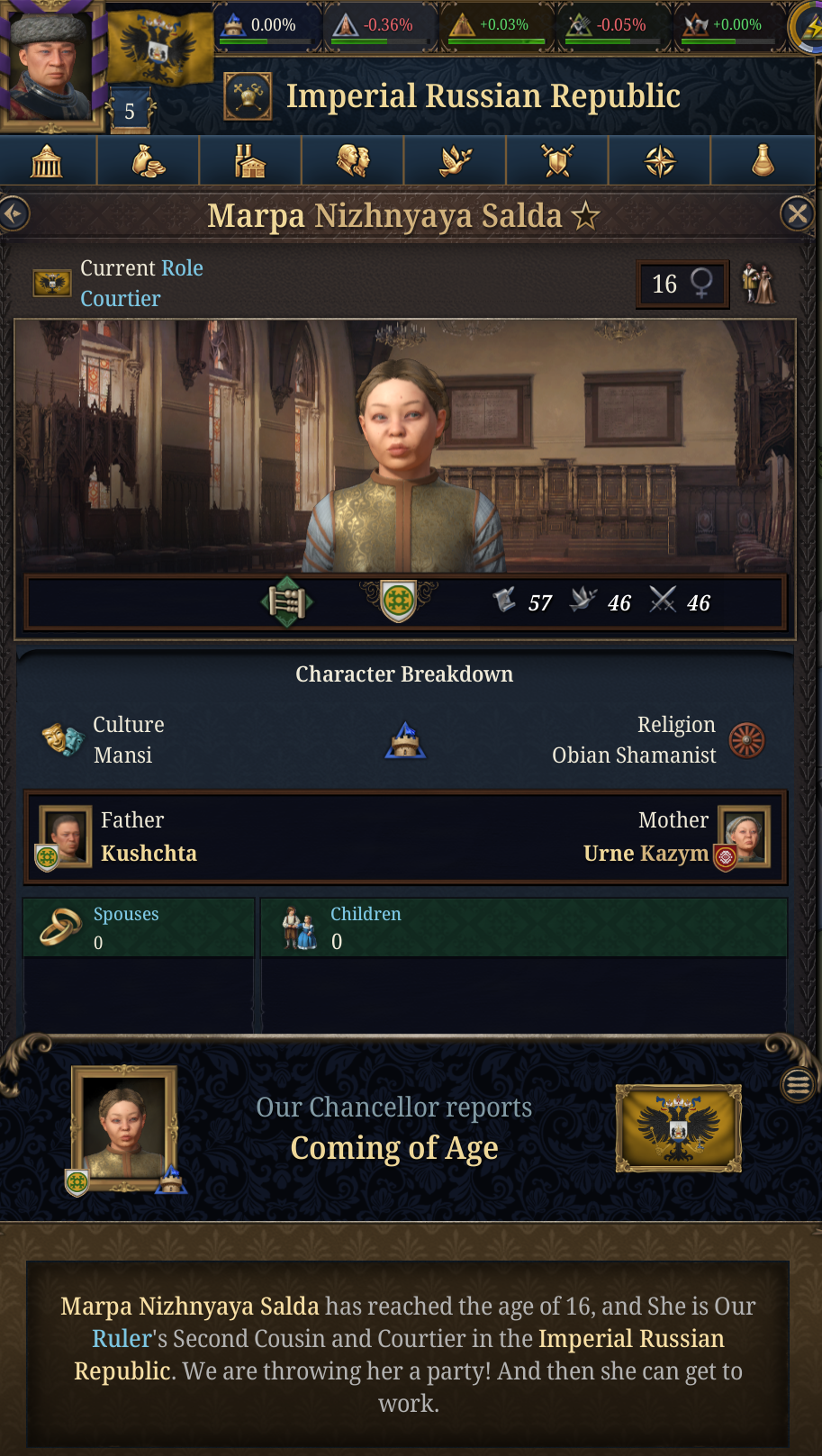 >>50454016 У меня есть дин браки и ноблы, но ощущение, что от них дети идут куда-то не в мой двор, потому что у меня при дворе только или прямые дети, или родные братья.