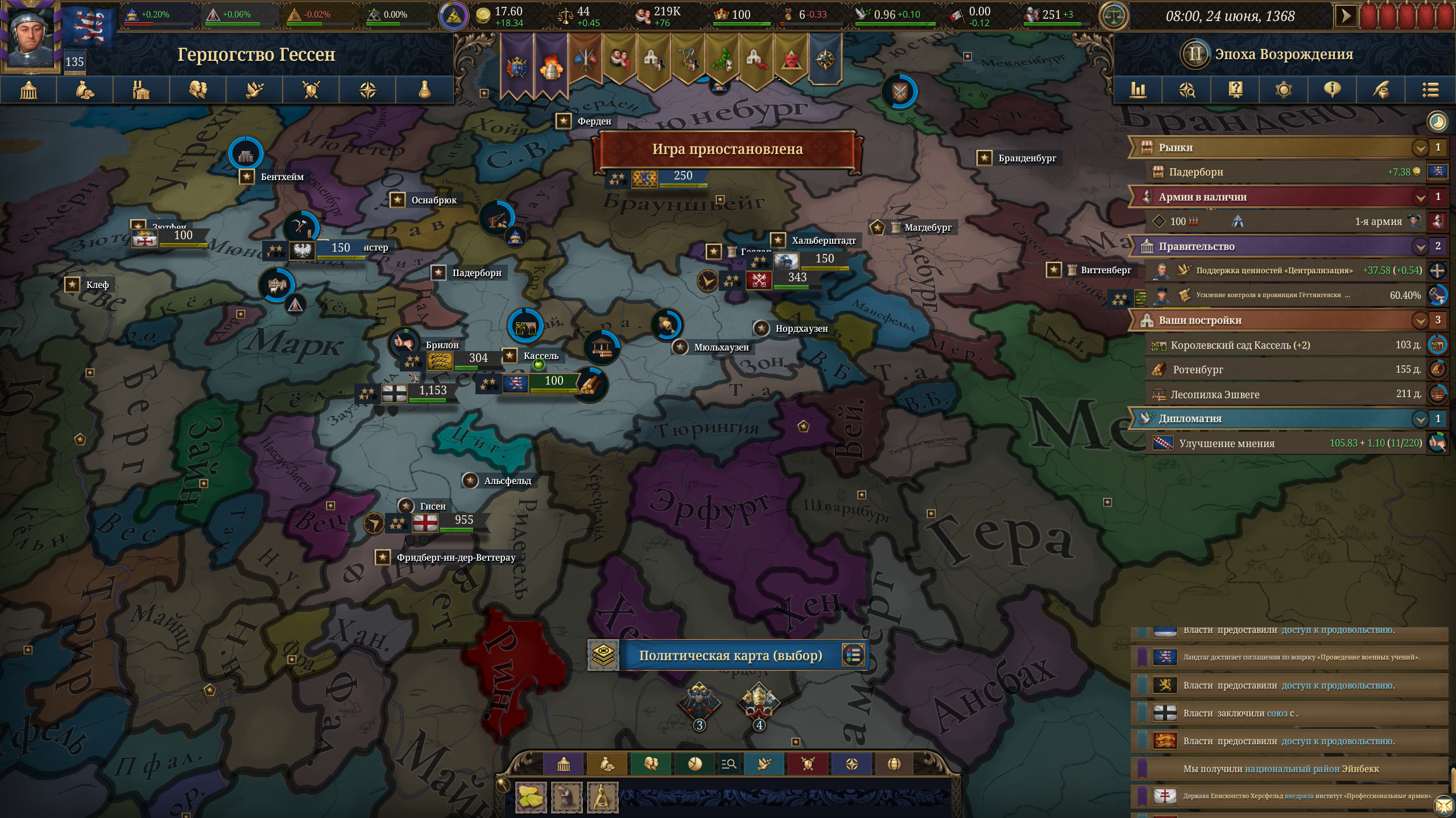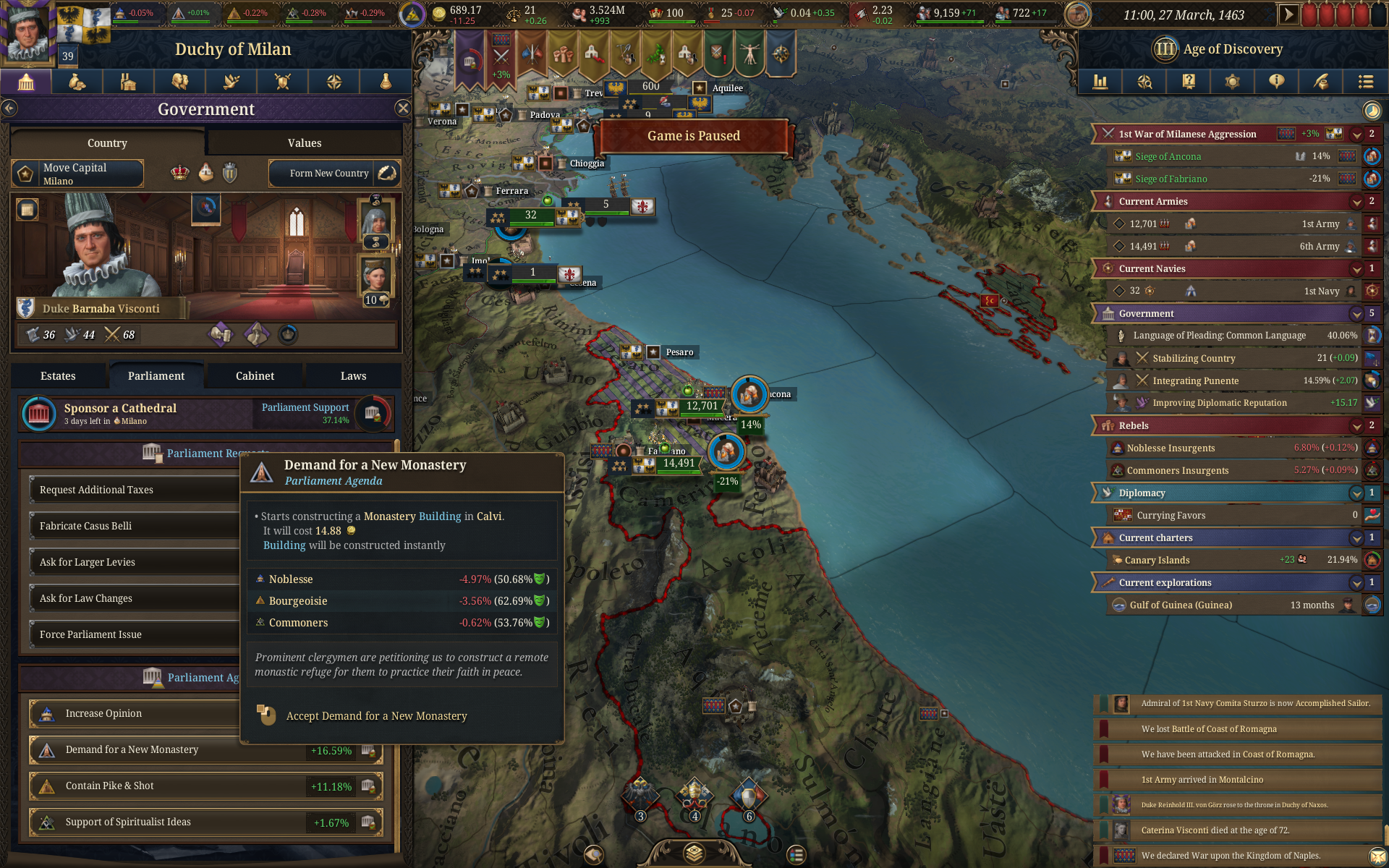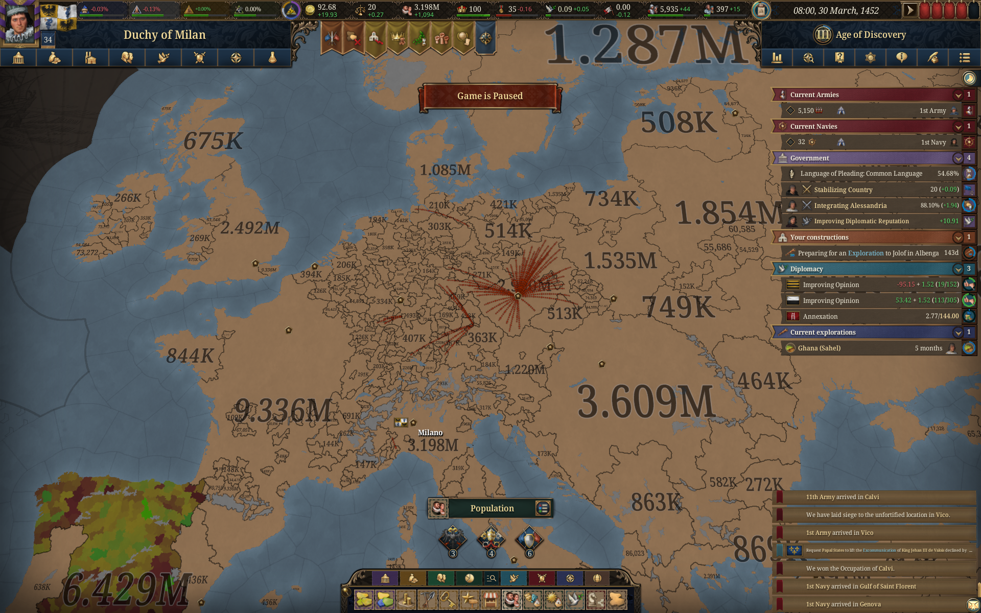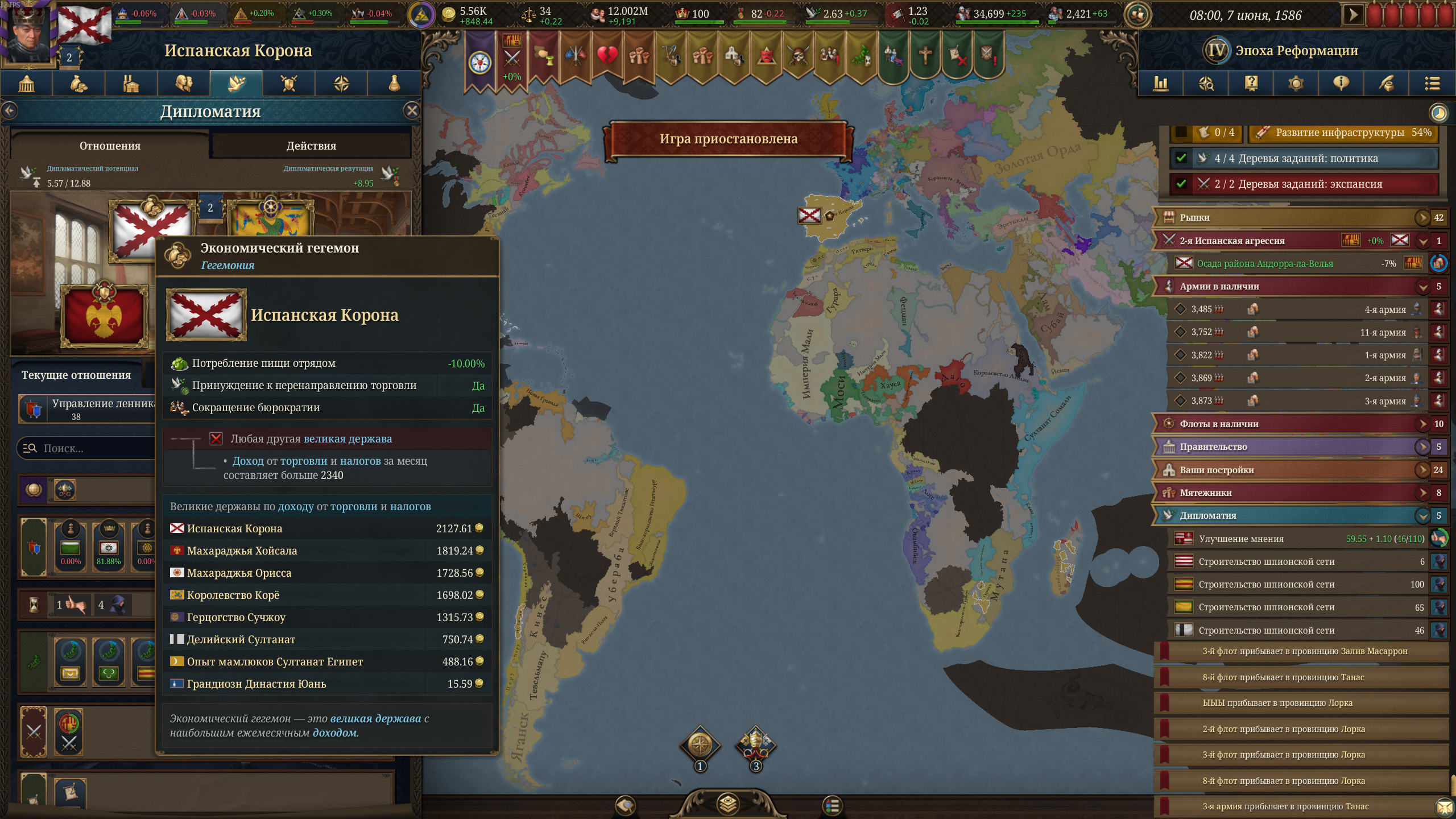 Как называется эта болезнь? Что может побудить ИИ заниматься такой хуйнёй? лишь 1/7 часть менпауэра бота на Франции в 1480 году используется, при том что на это уходит четверть экономики. Так же приложил Поляка, там всё нормально раскидано и он утопает в золоте.