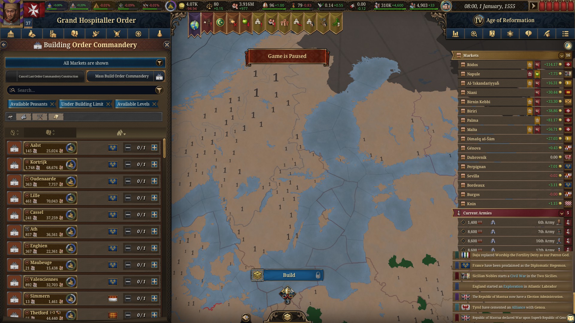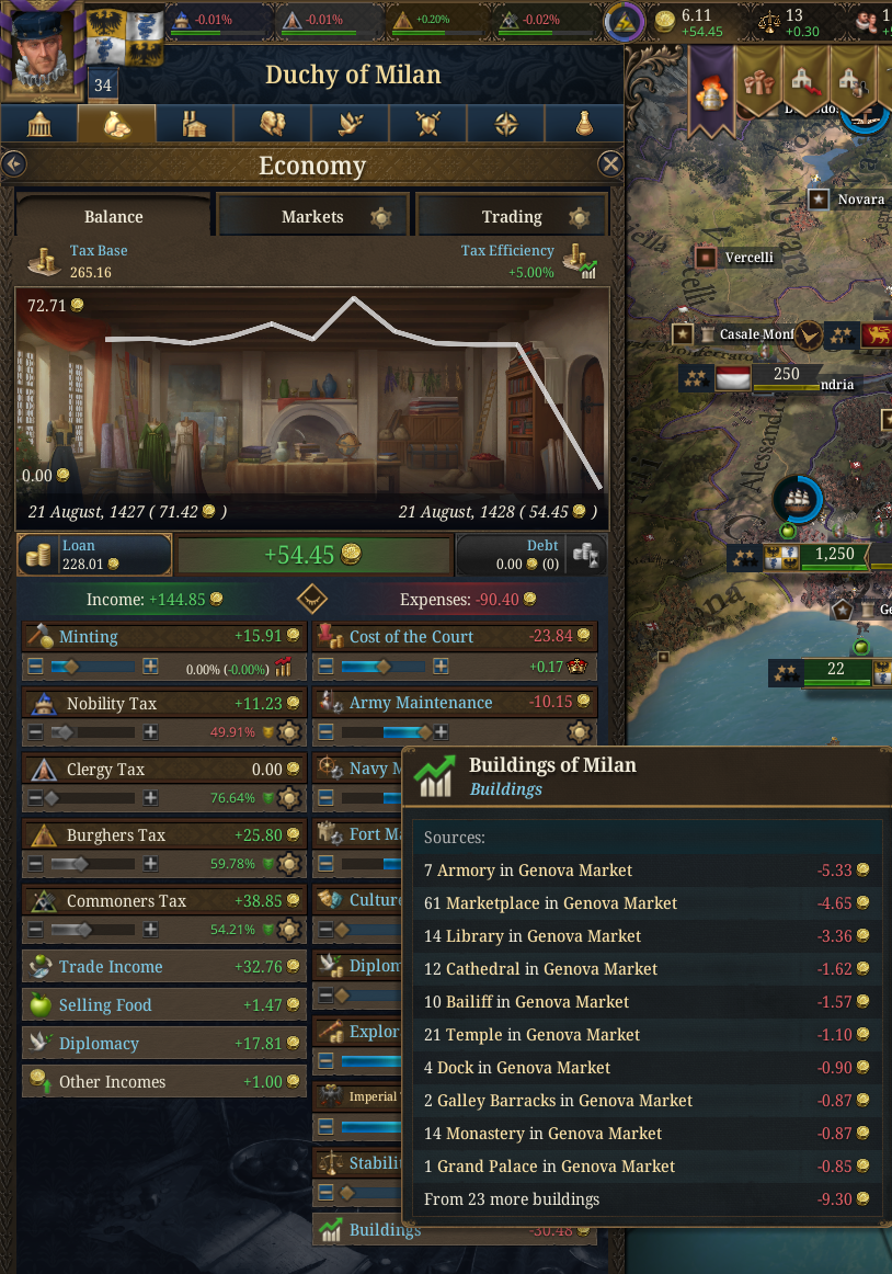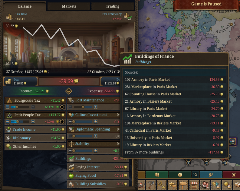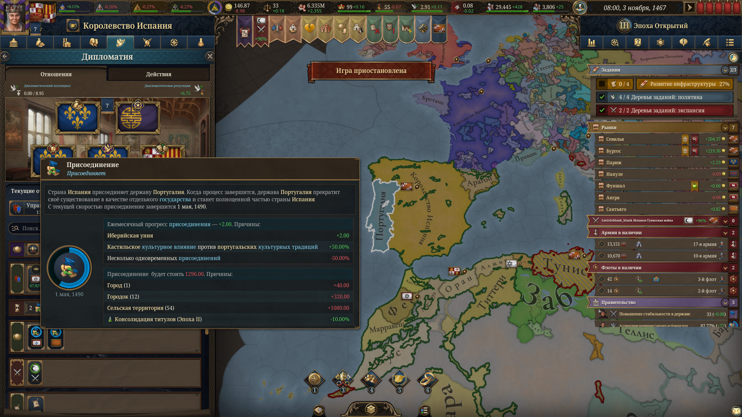 Как называется эта болезнь? Что может побудить ИИ заниматься такой хуйнёй? лишь 1/7 часть менпауэра бота на Франции в 1480 году используется, при том что на это уходит четверть экономики. Так же приложил Поляка, там всё нормально раскидано и он утопает в золоте.