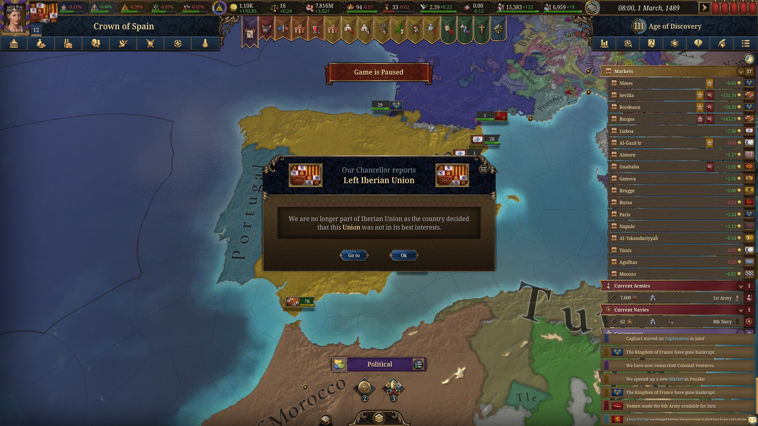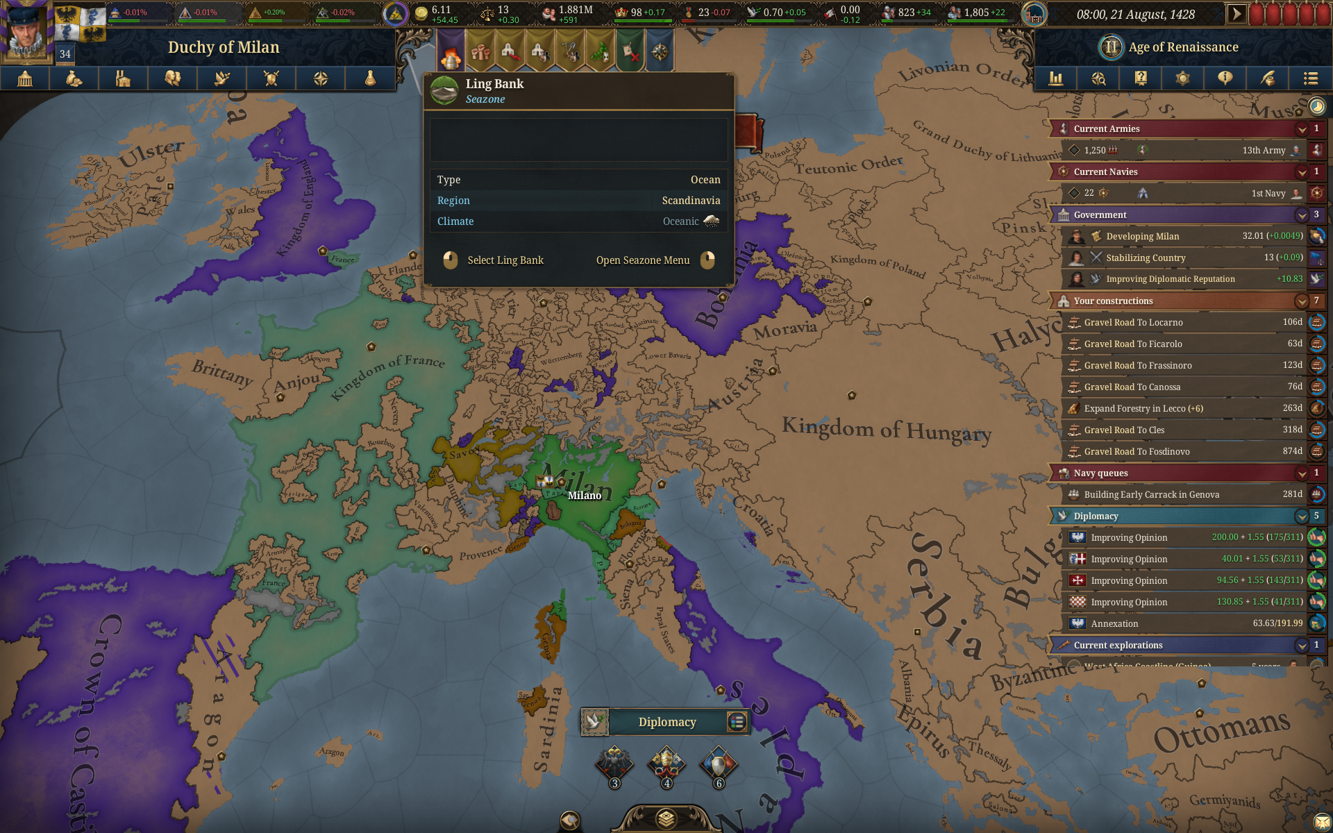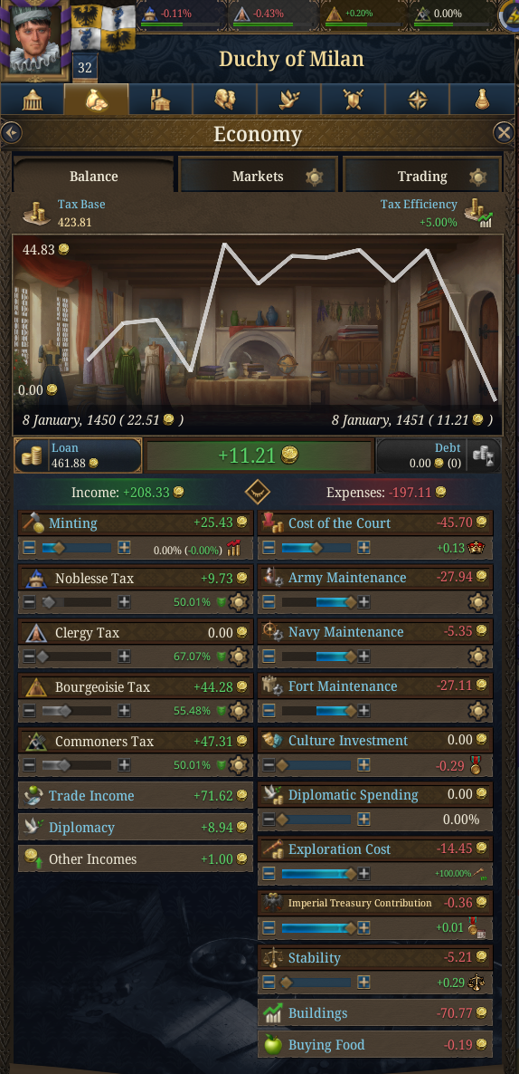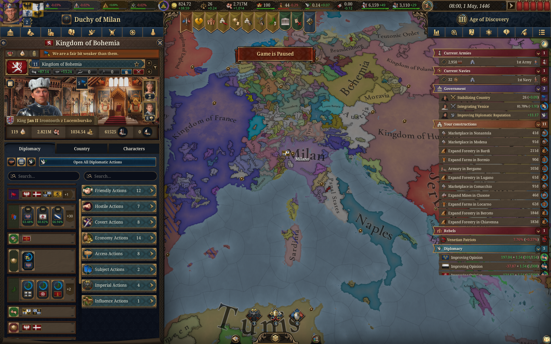 Как называется эта болезнь? Что может побудить ИИ заниматься такой хуйнёй? лишь 1/7 часть менпауэра бота на Франции в 1480 году используется, при том что на это уходит четверть экономики. Так же приложил Поляка, там всё нормально раскидано и он утопает в золоте.
