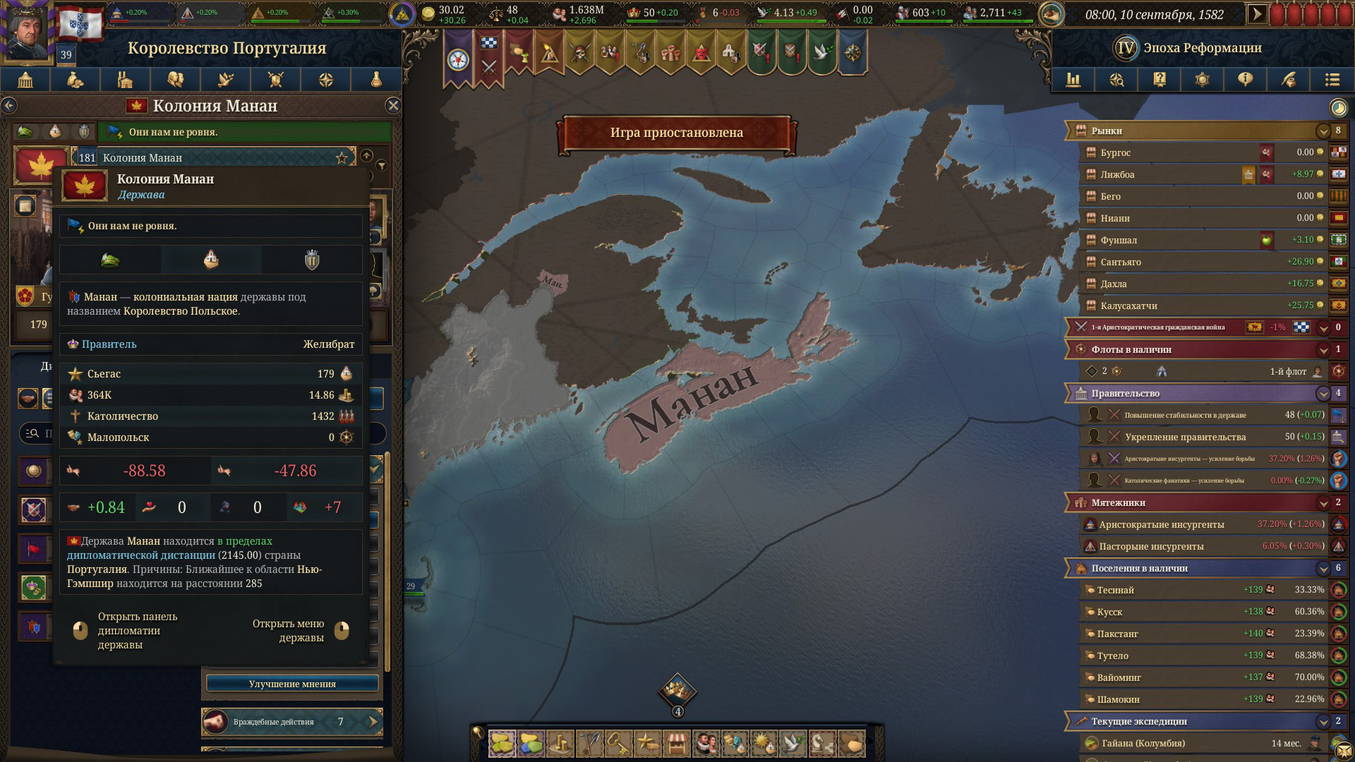 ЙОХАН БЛЯ А НИЧЕГО ЧТО ВО ВСЕЙ СЕВЕРНОЙ АМЕРИКЕ НЕТ ОЛОВА ЧТОБЫ ПРОИЗВОДИТЬ ЭТИ ЕБУЧИЕ СУДОСТРОИТЕЛЬНЫЕ МАТЕРИАЛЫ? Подумал что вот, у ирокезов исследована морская провка со старта и возможно я смогу исследовать через нее европу. А ВОТ ХУЙ!