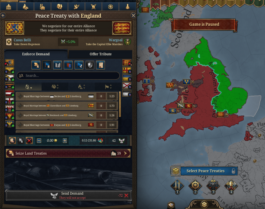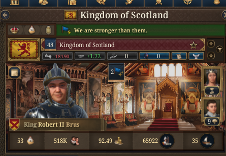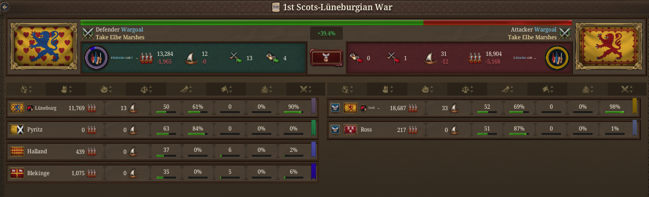 Ну и почему это говно способно мобилизовать в 2 раза больше населения чем я, при том что у них общее население меньше в 3 раза и контроля нихуя нет? Жаль что в окне войны не пишутся потери от истощения, я там армию 10к на острове запер. А ещё Шотландские армии какого то хуя вообще не вайпались, я за другой 10к армией гонялся год, раз 20 их разъебал но они теряли по чуть чуть.