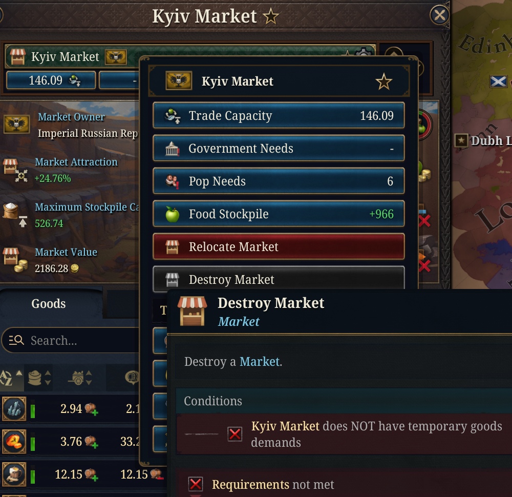 >>50434739 Алсо, добавлю. По идее должно быть так, опять же судя по еде. но хуй его знает, как минимум доступность к пулу идёт так - сначала прирост товаров идёт в локации, потом в провинции, а уже усе остальные остатки уходят на привязанный к локации рынок.