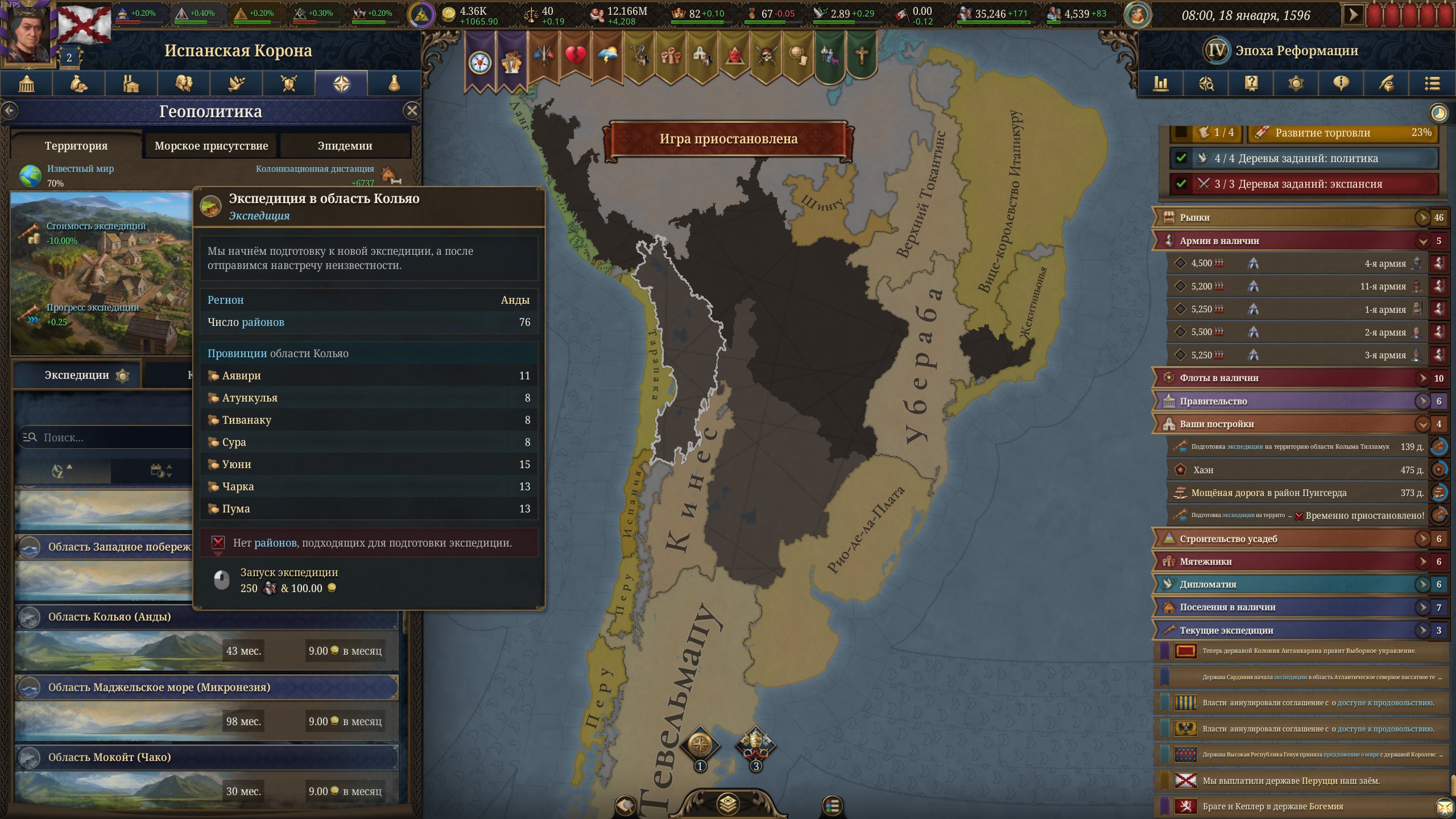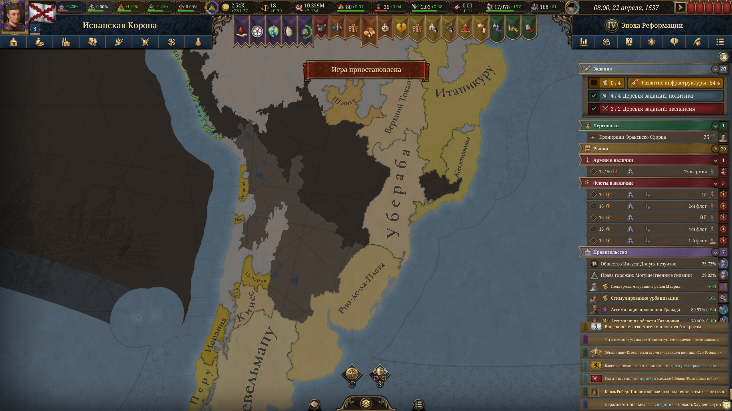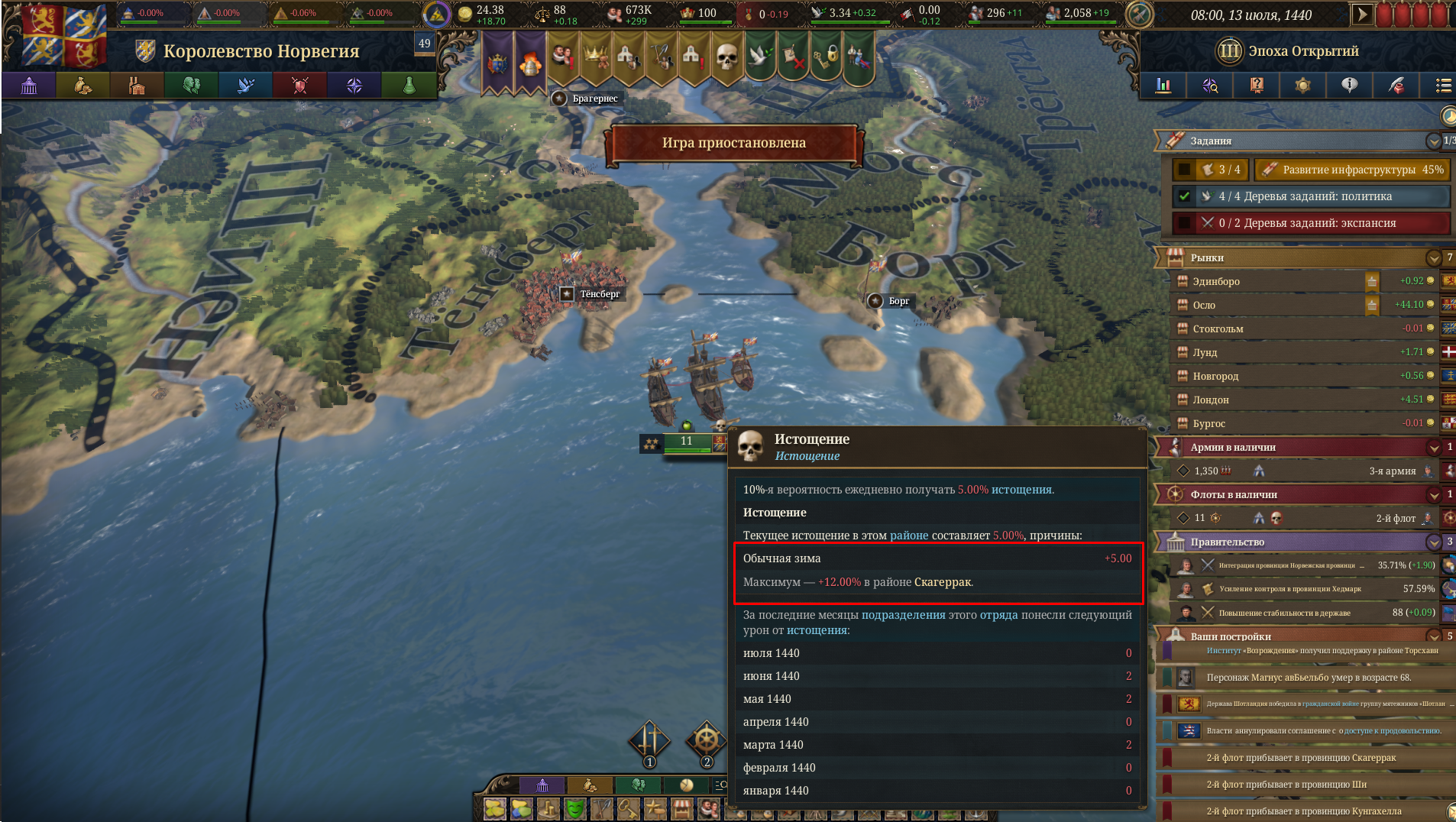 >>50432348 (OP) > Europa Universalis V Поиграл, спасибо, что с торрентов. Начал обучение за Норвегию на сложности, собственно, обучение. За эту страну полагается просто сидеть-пердеть и постигать премудрости. - денех нет. Вообще нахуй нет никаких и никак. Нет очевидных способов эти деньги зарабатывать. - бичи бунтуют и хуй вообще пойми, что им конкретно не нравится. Ну или я не увидел плашки с модификаторами, которые отношения с сословиями режут. - каждое первое число дикий пролаг на пару секунд. Мне так предлагают до 1836 сидеть? В хуй пусть свистнут, лол. А дальше будет только хуже. - армия поднятая дохнет от голода мгновенно - UI говно из жопы дьявола, стоило подрядить типов, которые UI для виктории третьей делали. - Забаговано пиздец. У меня мятеж аристократов развалил мою нищеармию и потом сам издох хуй пойми от чего и мне написали, что я подебил.