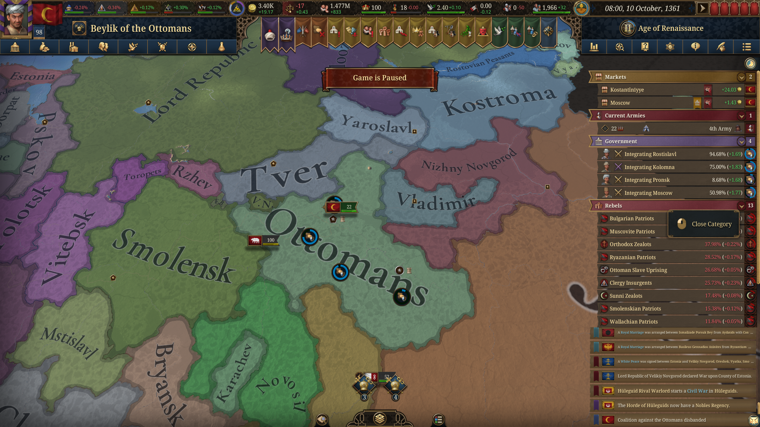 А я за османа все не могу в 4 наиграться, уже несколько раз переигрываю с разными сценариями, начала просто тестил имбовость эялетов, потом как бы поскорее крестить в ислам побольше земель. Вот теперь думаю как бы поэффективнее это всё сделать.