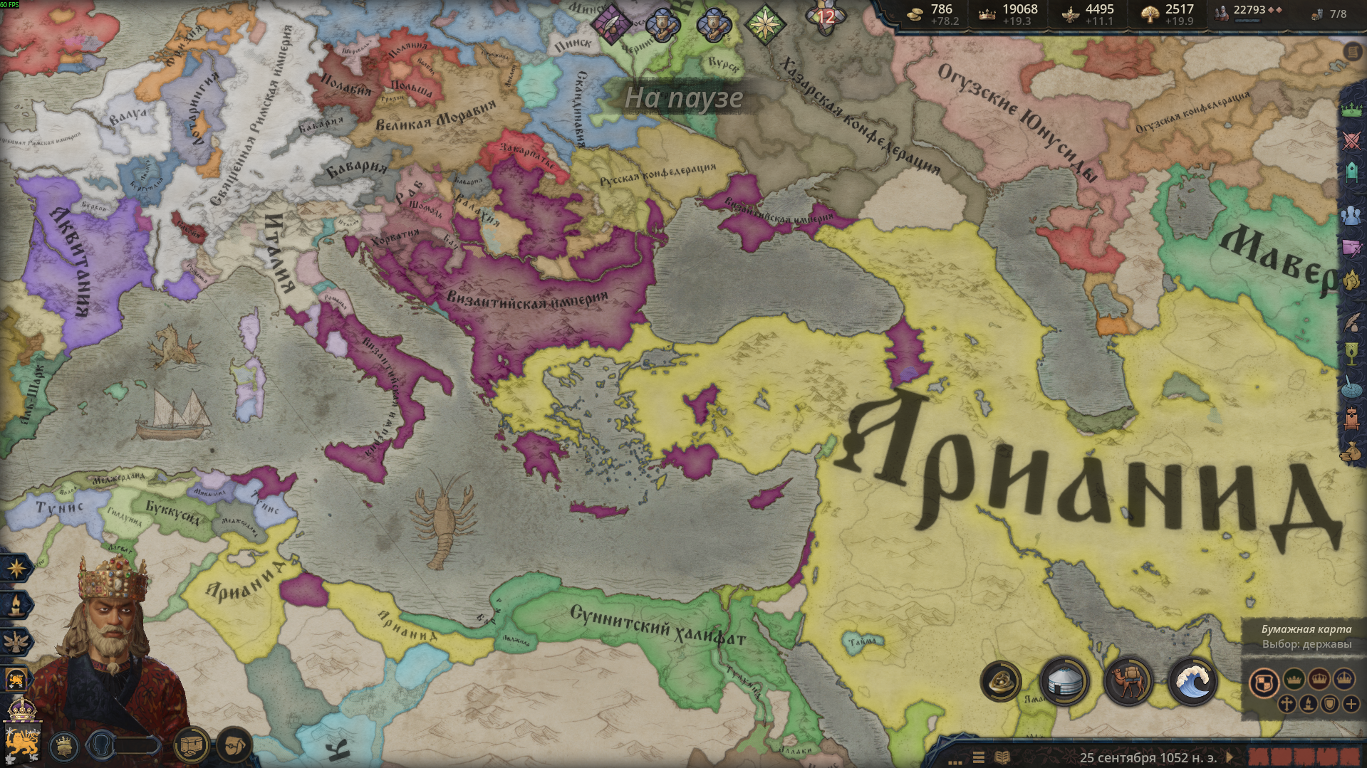 Q: На какой сложности мне рекомендуется играть и с какой страны начинать? A: Рекомендуется начинать со средней сложности сильной страной. • EU4 — Кастилия, Османы, Франция; EU5 — смотри протыков с замедленного, ссылки давать не будем, ибо много чести будет; • Victoria 3 — Великобритания, США; Франция; • HOI4 — США, Италия; • IR — Рим, диадохи; A: CK3 в противоположность другим играм линейки, наоборот стоит начинать с самых низов, дабы понять все аспекты игры. Самый оптимальный старт с минимальным риском слить партию — один из Ирландских графов, желательно, с 1066-го года, дабы не застать набеги викингов, которые доставят немало хлопот новичку.