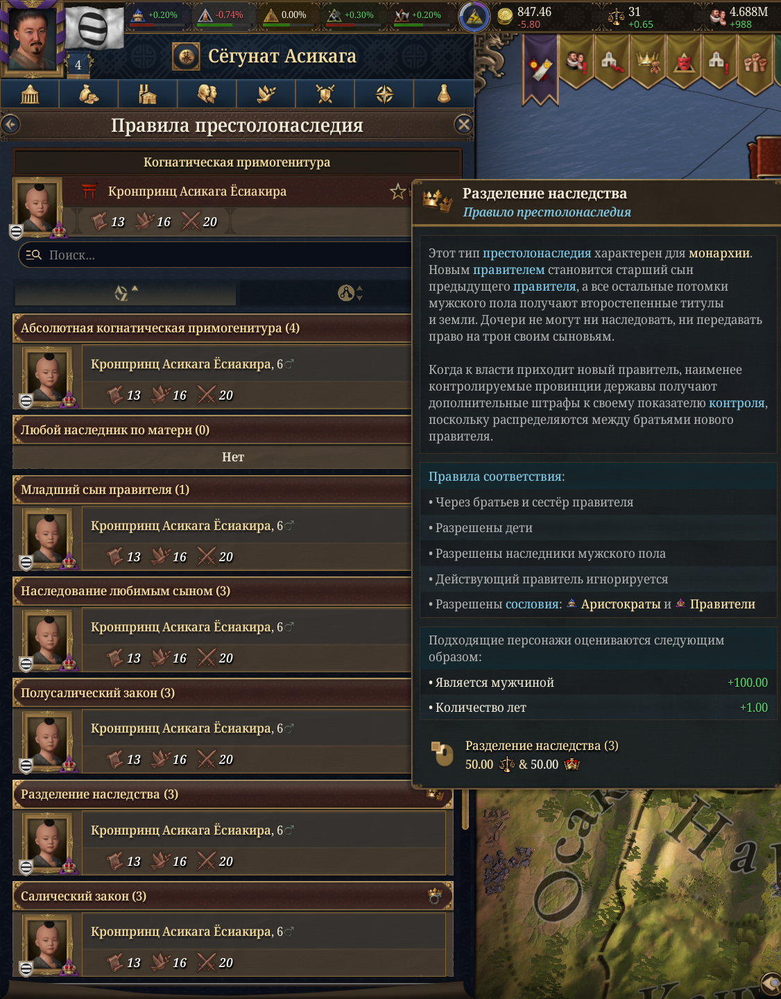 >>50450034 Оно же всего на 10 процентов силу власти усиливает, хотя я хз может там ивенты неприятные. А какой закон наследования тогда лучше, чтобы нормальыне правители были?