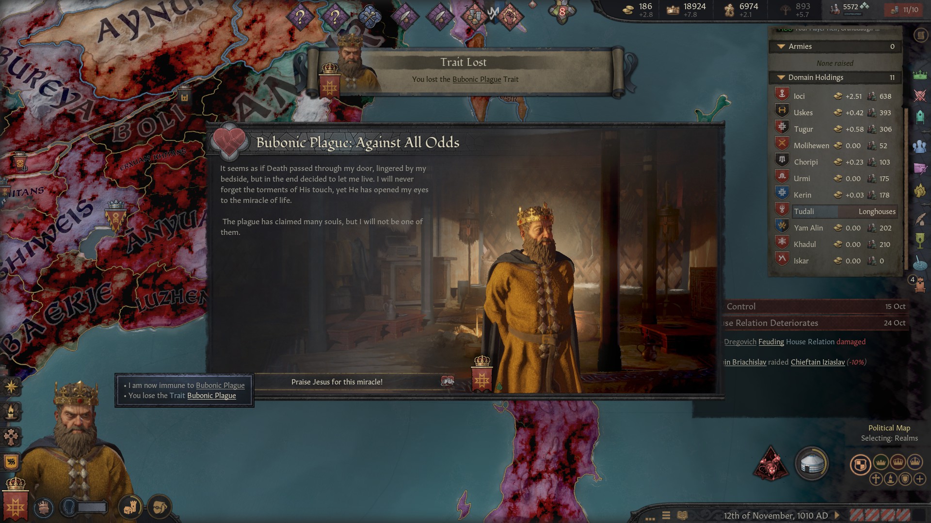 >>50433749 >У меня мятеж аристократов развалил мою нищеармию и потом сам издох хуй пойми от чего и мне написали, что я подебил. Еда кончилась, болезни, дезертирство, утонули в реке.