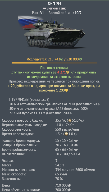 >>50448659 С прем акком и КД 0,7-1 (если ты только вкатываешься, то будет скорее всего такой) прокачаться до топов около полугода размеренной игры. До 6-7 ранга прокачка довольно быстрая. В топ техника выводится довольно быстро. На 6-7 рангах уже анальный гринд начинается. Пока техника в топ прокачается, уже можешь пару машин вкачать. Литаки и вертолеты щас смыска качать нет. После 5 ранга в основном неиграбельная хуета.