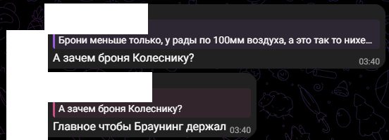 >>50455276 >Поэтому подкалиберы ломаются об разные юбки и экраны? Нет, это отдельная механика. Подкалиберы начинают разрушаться, если ты попадаешь в броню не под идеальным перпендикулярным углом. И только попробуй отклониться на пару градусов! Попал под углом от 30 градусов? Снаряд разрушился. Попал под углом от 70 градусов? Рикошет. Попал в стык плит? Игра посчитала суммарную толщину брони как полтора метра. Попал в слабобронированную машину? Снаряд пролетает как нож сквозь масло, не создавая ни одного осколка. Попал в снаряд? Снаряд покраснел, но не взорвался. Попал в важный элемент или в члена экипажа? Успех! Повторяешь ещё 3-4 раза, пока в танке противника не закончатся люди.