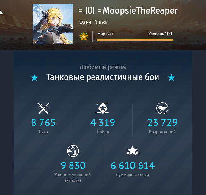 >>50507533 А своё число боёв ни на недоступное для игрока среднее по нации на игрока, ни на общее число боёв на нации не накладываешь, потому что это другое, понимать надо. Твоя идея даже для мажоров работает так себе.