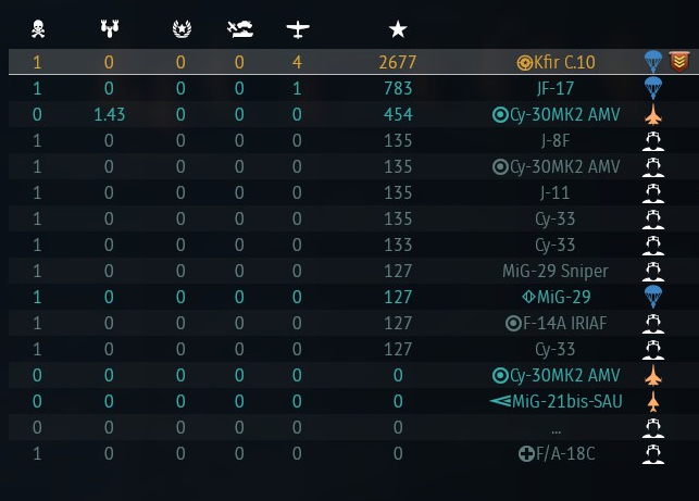Вот например, чисто 1 бой. Ебнул 15Е, попутно уклоняясь от ракет 30СМ, он блять сбивает мою Пл-12 своей Р-77-1, но не вывозит в клоз комбате. В итоге в 1 размотал двоих. Если сбитие Ф-15Е можно считать достижением, кек, >>50493279 Хуже амнямов в игре ракет нет.