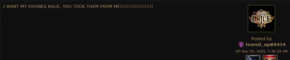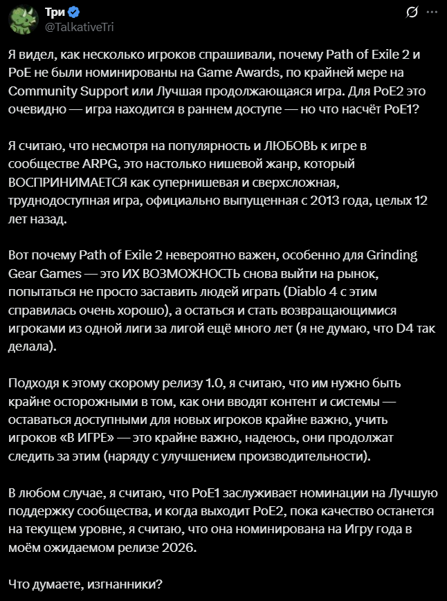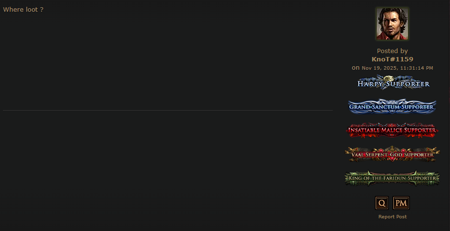 дроп надо в сто раз резать, тогда у этой игры есть шанс похуй на нытье выводных тогда оживут все механики сейчас сирус сеты отбегал час купил билд а без дропа придётся сидеть думать а где же мне резы добрать а урон ах есть же старый добрый рог и в делве фосилями покрутить можно и тд И вишенкой на торте петля для рмт гноя в чем не прав