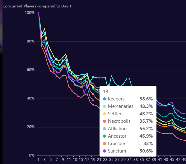красная сдохла потому что лига параша патч нотсы говно мета говно фарм говно асинк трейд это наоборот хорошая механика для ретеншена на красной где экономика дохлая обычно но основная масса зашла посмотрела на кал говна вместо лиги и ливнула это же не синяя где рмт скотина на работу вынуждена ходить да и в целом пока перс есть одетый иногда тянет зайти поиграть а на красной 1 рип == скип нах если лига дерьмо качать заново никто не будет в таких условиях на софте кстати в этой лиге заметно больше персов 90+