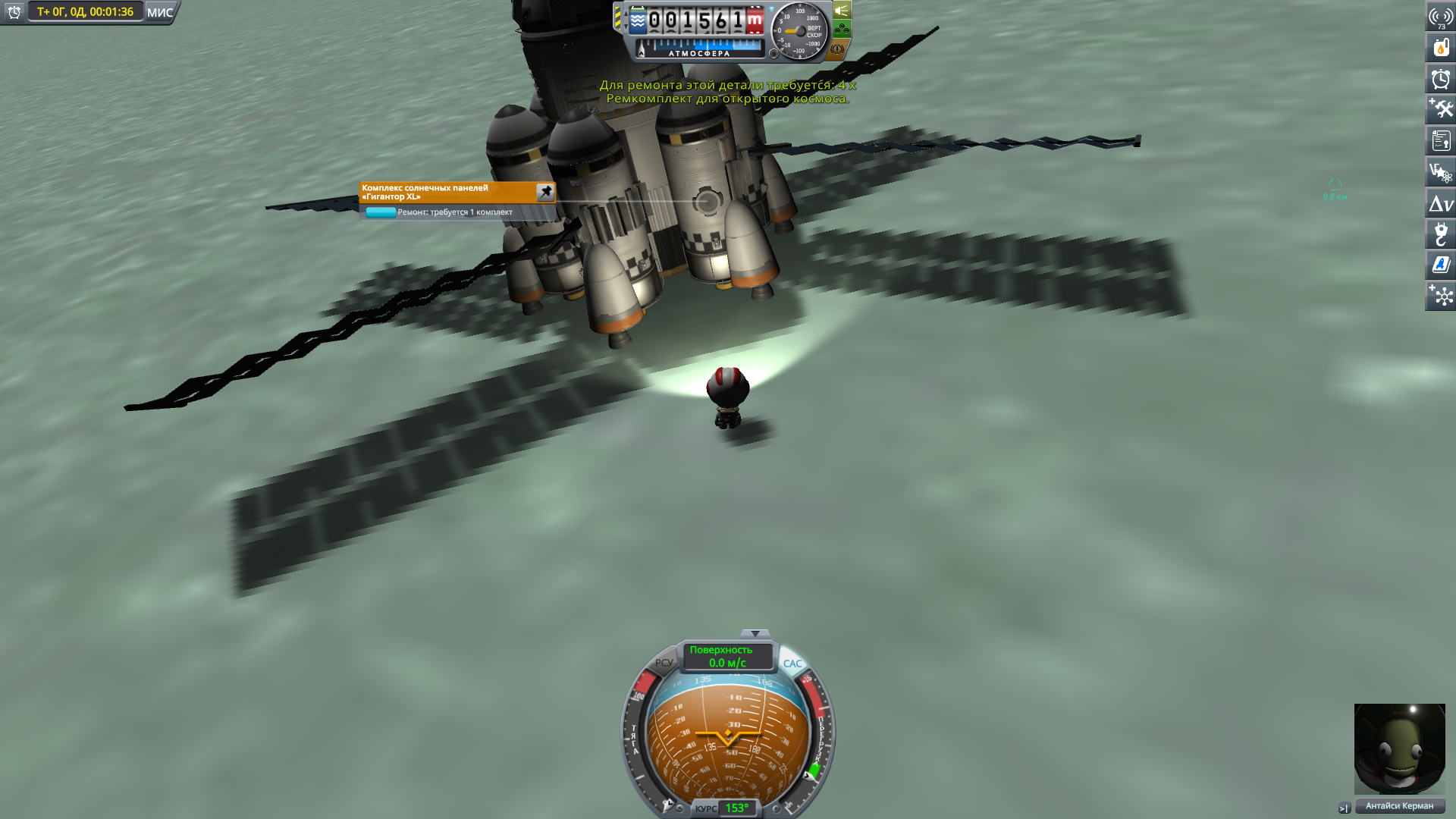 Кароче, раз уже Кербаны приземлились теперь сюда, спрашиваю тут: 1) как найти скрытую планету за орбитой Илу? 2) как сделать так, чтобы учёный без робота-управляющего мог сам кататься по планете и собирать науку? 3) как сделать так, чтобы собранный элемент в самолётном ангаре помещался в отдел для готовых сборок? Туда не даются ни в каком виде роверы, которые я планировал подключить радиально, и которые прямым подключением тоже не даются 4) как сделать для мини-лунок типа Гилли или Минмуса монотопливные планетолёты? Я попробовал, они при переходе в режим РСУ только крутятся, а вперёд-назад/вверх-вниз нее летаю