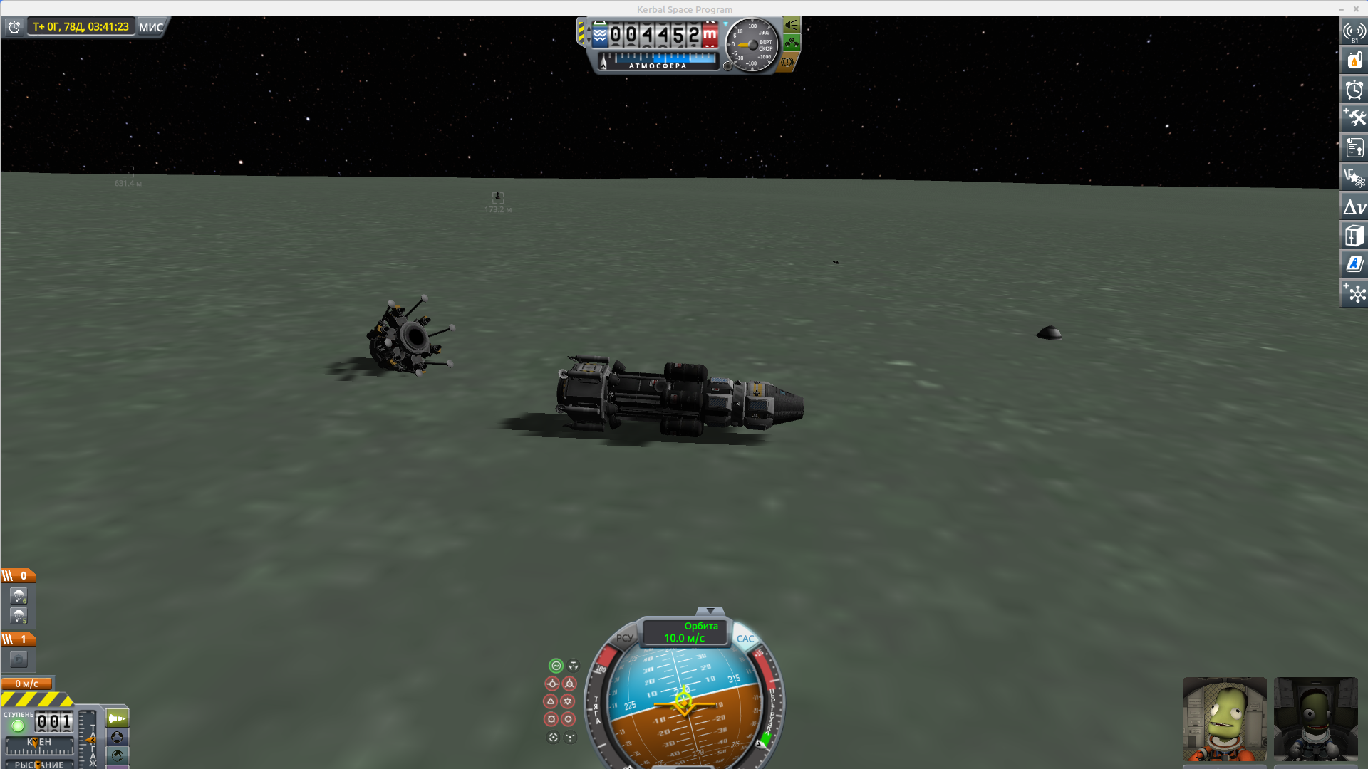 Хочу сесть на поверхность Джула. Ну как сесть, достигнуть уровня 0000м и в пределах от 0000м до -0100м собрать всю науку, высунуть огурца из банки ради доклада экипажа и взятия "образца поверхности", а потом врубить тяги и одновременно обрезать парашюты, чтобы спастись, съебавши. Так вот, во-первых, сколько мне нужно дельты и какие лучше двигатели брать, чтобы долететь до Пола или в идеале покинуть гравиполе Джула? Если что, покажите что ли примеры ваших ракет, которые могут вырваться из плена зелёного толмтяка. У меня открыты не все ячейки древа технологий, но многие, почти все, так что повыбирать есть из чего. Во-вторых, где безопасная высота аэро торможения об Джул? В-третьих, пока я буду тормозиться об атмосферу толстяка и медленно опускаться, я смогу понасобирать науку из разных слоёв атмосферы... А они там есть? Там есть "биомы"? Ну, ниже нуля это понятно, а выше? Каждый 50000м меняются ли параметры для замера или нет?