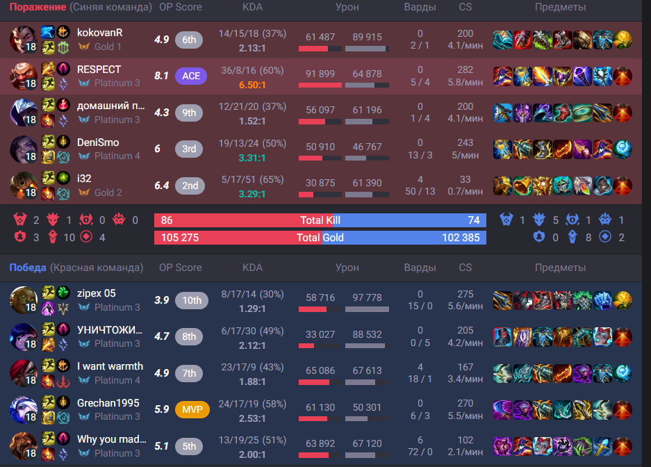 >>50559415 Только кто то отп с высоким кда, уроном, фармом, а кто то ебашит арамчики и регает ранкед на рандом кале раз в неделю, выбирает говно в каждой своей игре, но оба с одинаковым винрейтом и рейтингом, потому что так решил разработчик и если ты слишком много апаешь или сливаешь он начинает тебя возвращать удивительными переменами в подборе игроков.