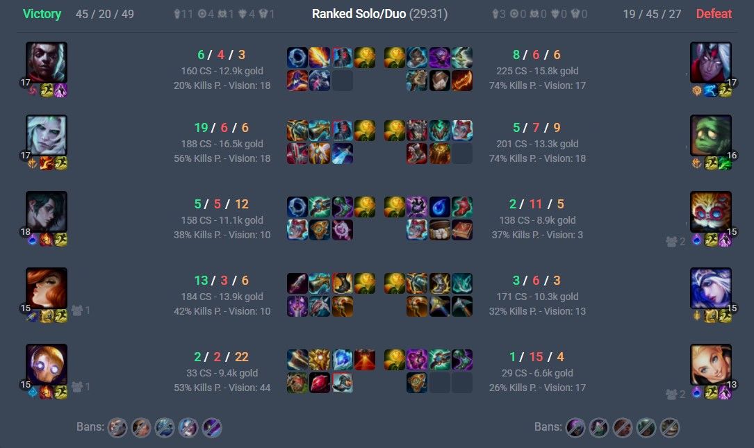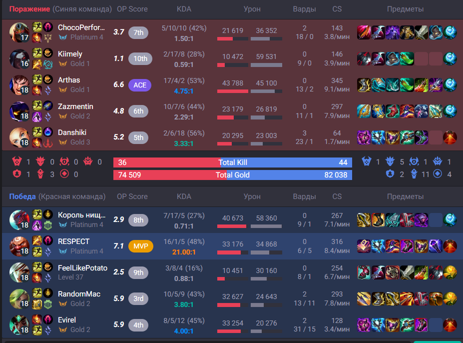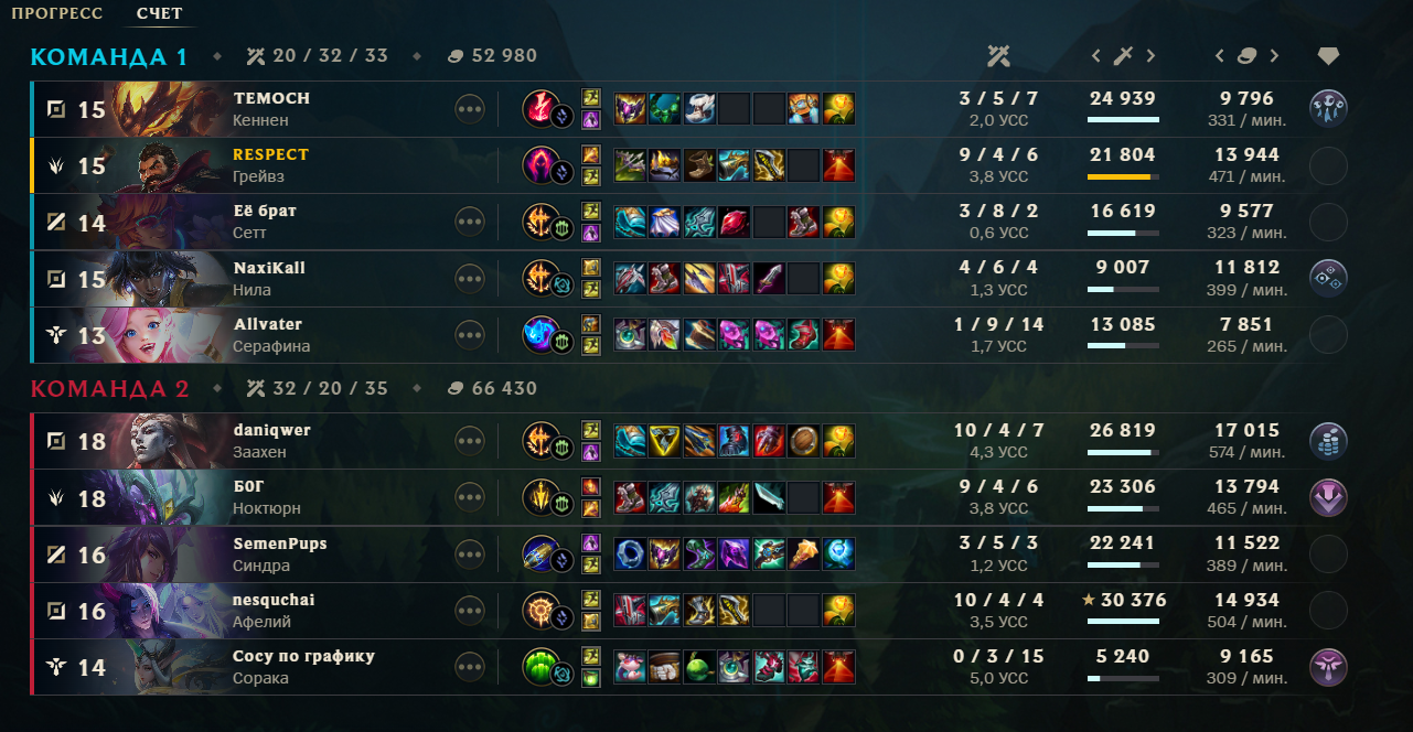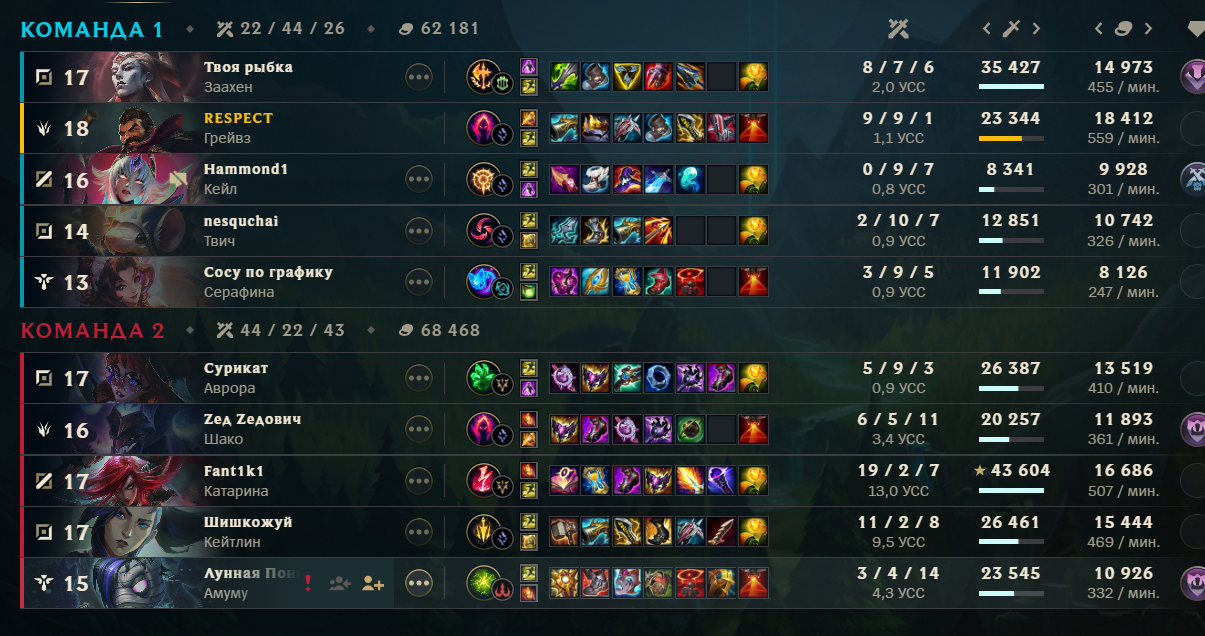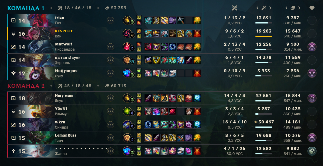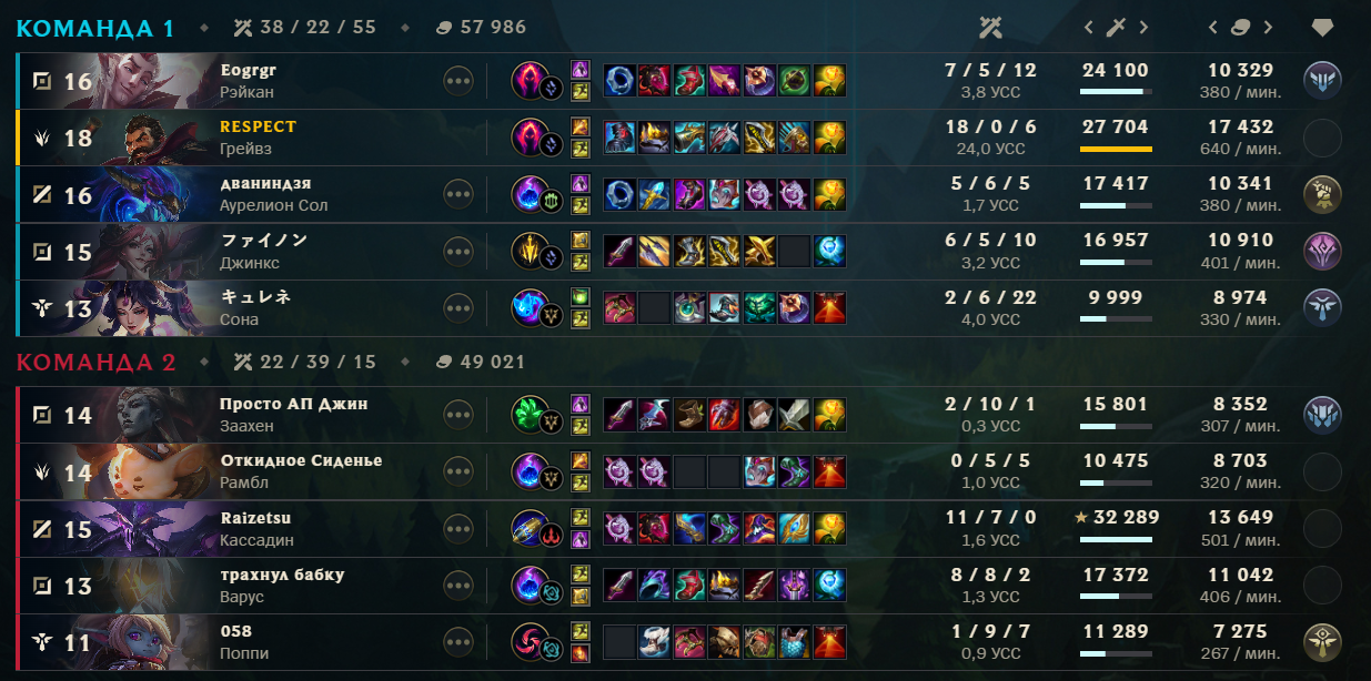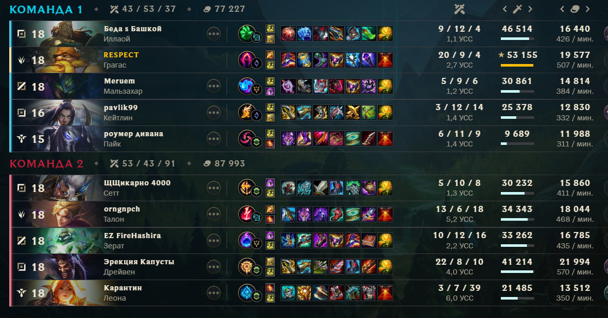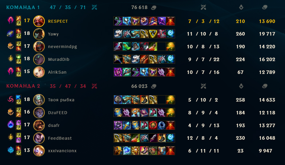 Абсолютно балансный рито матчмейкинг. До последней секунды было неясно, кто победит. Все бились, как львы и зубами выгрызали победу. Интрига сохранялась до последнего момента. Ну, а то, что 0 обьектов, и счет по убийствам в 4 раза разнится - так это случайно. Ведь все в рамках баланса. Силы были абсолютно равны. Никто не фидил и ни одна линия не была гапнута. За это лигу и любим.