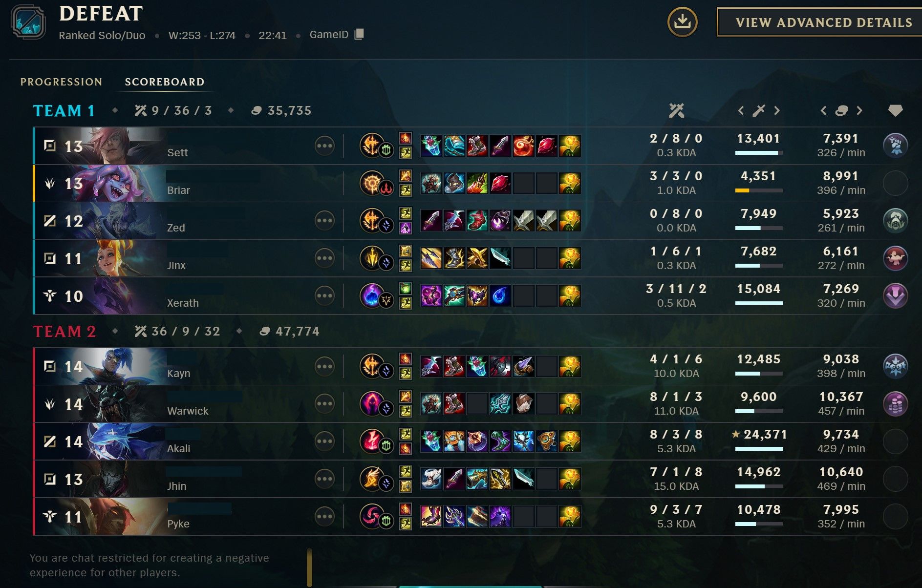 >>50562814 Ага, жёстко обоссал на сломанной параше, имея почти мастер ранг и закончив 7-7 (я закончил 7-5), учитывая что vs других лесников на этом рейтинге он играл так. Даже чалики-стримеры банят это говно и отказываются играть против этого. Вместо бана неприятного контрпика своего чемпа всем приходится тратить бан на эту имбалансную хуйню.