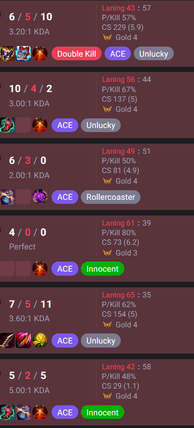 после перерыва 5 лет снова качаю акк, 20+ лвл, в нормалах постоянно попадаются враги эмеральды и иногда лоу даймонды, которые разъебывают моих тиммейтов до состояния 0/5-0/10 в первые 10 минут сам я голдовый додик но система походу думает что я какой-нибудь гигасмурф и должен тащить этих уебков, видимо это потому что я застомпил первые ~15 игр в нормалах на этом акке и теперь система выравнивает мне винрейт до 50% постоянно в команде додики фидящие, только где-то 1 из 10 игр где моя тима разносит