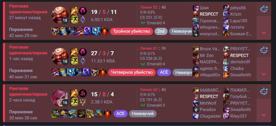 Эмиральд 2 аверейдж, алмазы тоже переодически попадаются. Ни одной нормальной или равной игры. постоянно в одну калитку. либо лсные пидарасы всирают лайн и фидят явно забущеные / афк лесники / токсики ну итд. за 50 игр~ на эмиральде мне ниразу не удалось нормально поиграть. это пиздец...