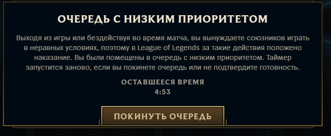 эммм, у меня этот штраф 2 игру уже висит, когда обычно только первую после афк/лива заставляют ждать. и это даже не за лив, а просто за то что я из за их же сломанной поеботы перезапускал игру и афк простоял буквально минуту. выблядки меня уже вторую игру этим штрафом мучают и хз сколько еще предлагают. ебать эти свиньи игру втаптывают с каждым патчем, буквально с каждым днем, вангвард наш великий отрубился во время начала матча и пришлось всю парашу через диспетчер вырубать и перезапускать? бан. проебал игру недостаточно стараясь 0-10 наебышей вытянуть? бан. афкшил минуту потому что пинг ебашит? бан. (за три года доты кстати никогда проблем с пингом не было)