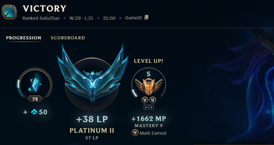 Джош Менке говорит, что система выдает игрокам предопределенный экспириенс, то есть заранее решено проиграете вы, выиграете или будете иметь "равный" матч с точностью 91%. То есть по сути чтобы заклаймбиться в лиге, нужно в первую очередь играть ради статов (кда, фарм, вижн скор, APM и т.д., все циферки которые раньше были в ныне удаленной вкладке статистика, а теперь их можно посмотреть только на всяких опгг), причем статы эти берутся средние по всем вашим играм на конкретном чемпионе/роли).