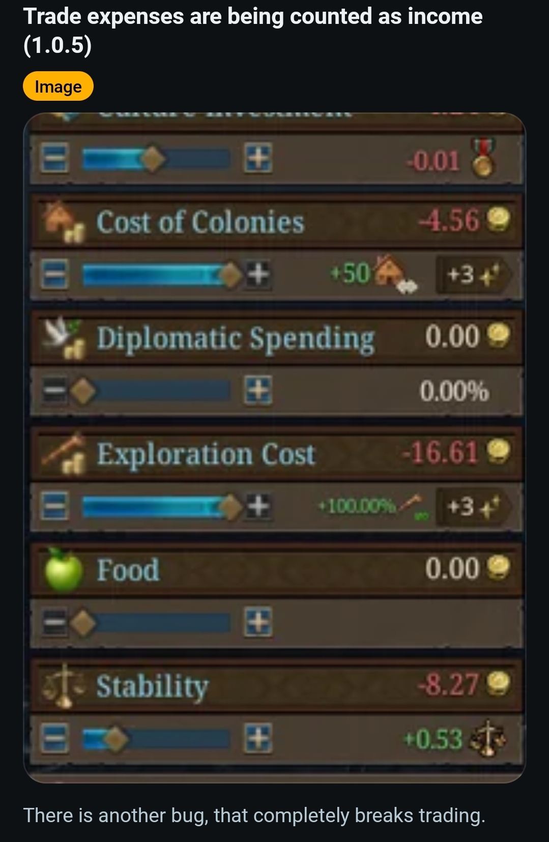 >>50478473 Антипрофит в том случае, если не хватает торгового потенциала, чтобы вывозить из колоний блестяшки (и завозить им стройматериалы). Плюс чтобы колонить быстрее, нужно морское присутствие. Короче, ебалион корабликов мастхев.