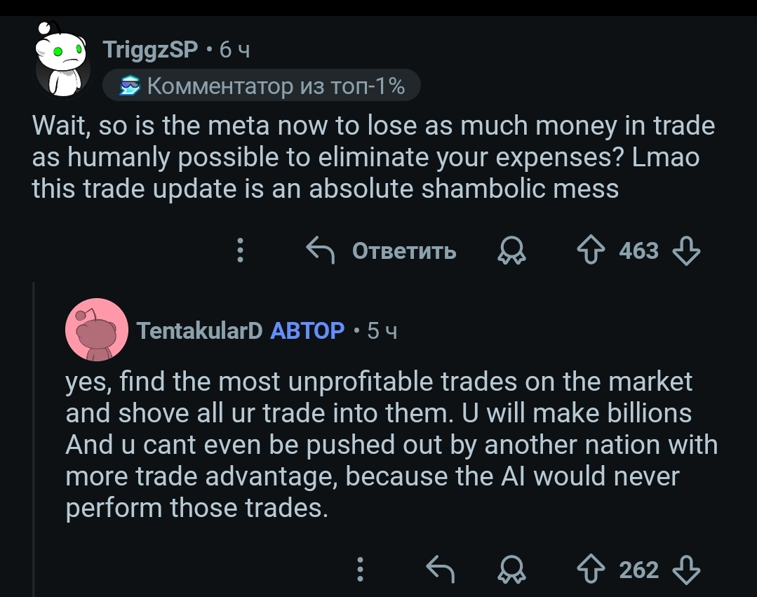 При этом они повысили содержание торговли в 10 раз и не убрали проблему с раздутой экономической базой, просто забейте на трейд как говорил анон в прошлом треде.