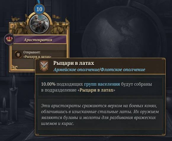 Вот эта теха имба, дает отряд из ПЯТИСТА тяжеконей, но только от ополчения аристократии. Хз почему аристократические ополченцы умеют собираться в отряды по 500 рыл, а регулярные кавалеристы только по 100.