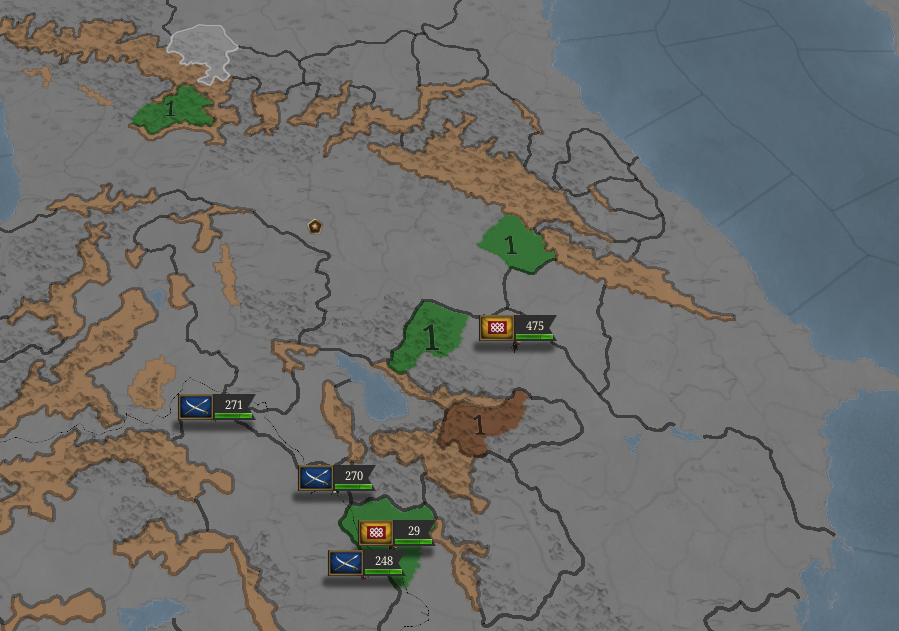 Это если феод. А если вассал, то во избежание восстаний и проблем в экономики он дробит страну на ленников и получается пиздец каша из однопровинчатых держав.
