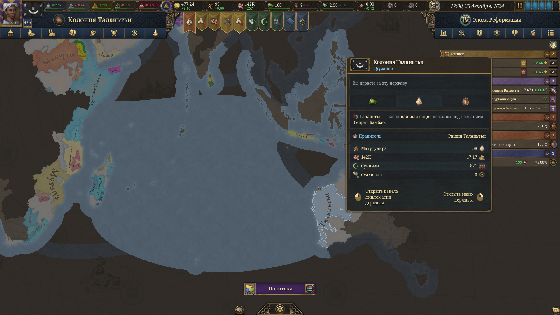 Потихоньку поглощаю австралию. Даже отыграл на коморских островах специально как торгаш между африкой индией и индонезией, тыкал торговлю. А потом как понял что тут лежит пустой континент с золотом... Хотел юар освоить но португалия приперлась раньше