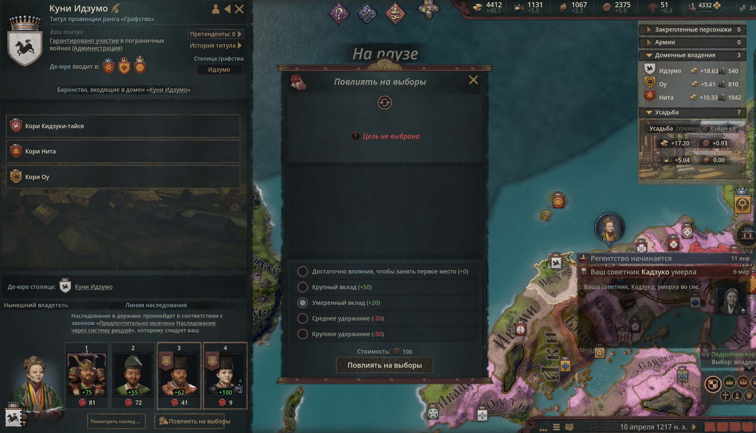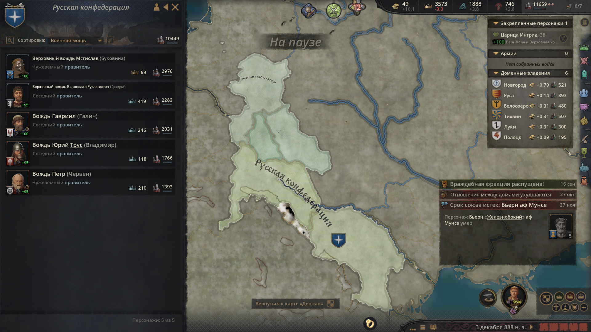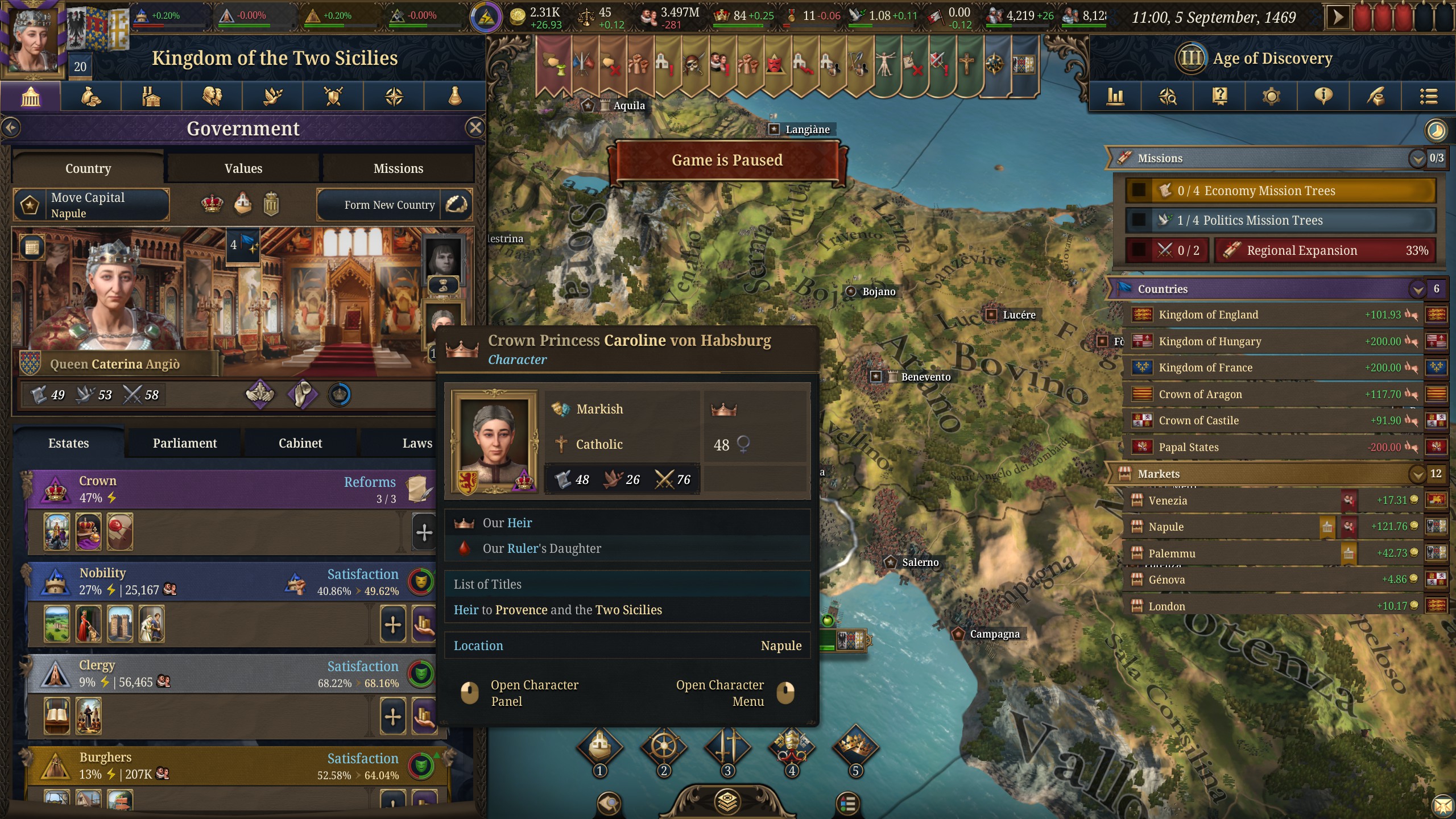 Я вообще иногда не понимаю правил престолонаследия. Была такая ситуация, что моя кронпринцесса вышла замуж за короля Венгрии, у них родились двое сыновей: старшему отошла Венгрия, а младшему — моя держава. Как так? Хуй знает.
