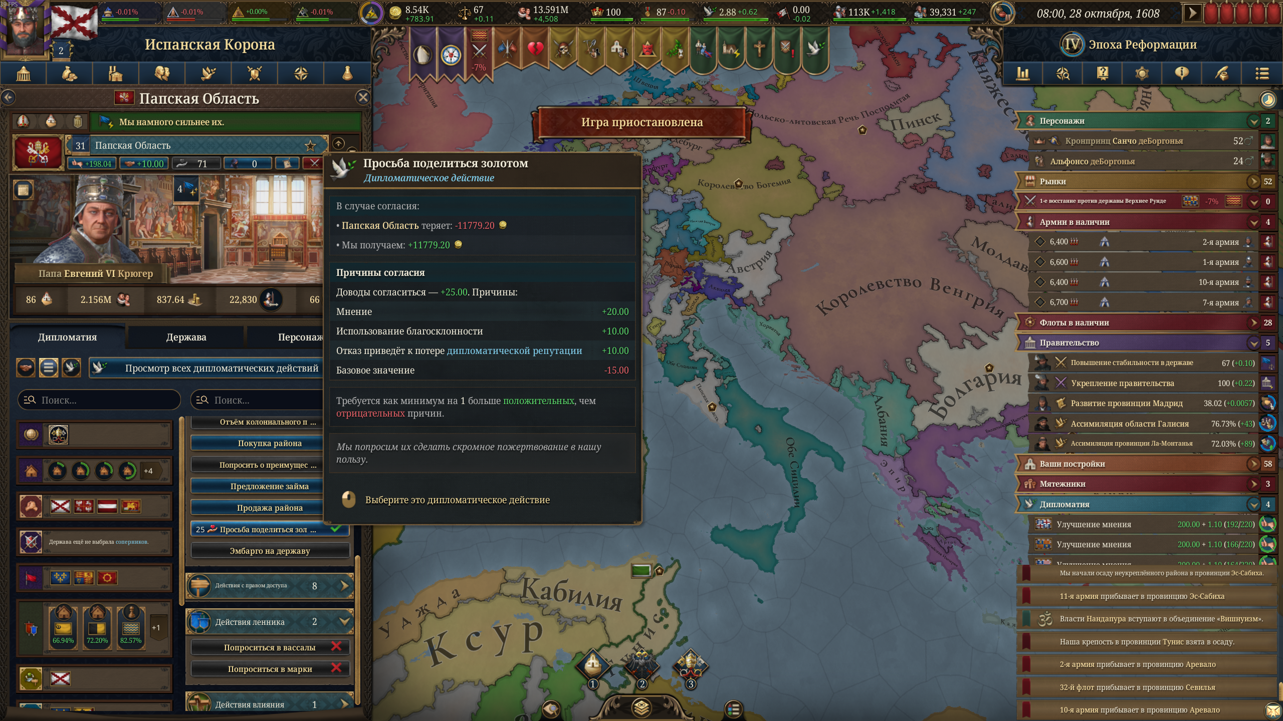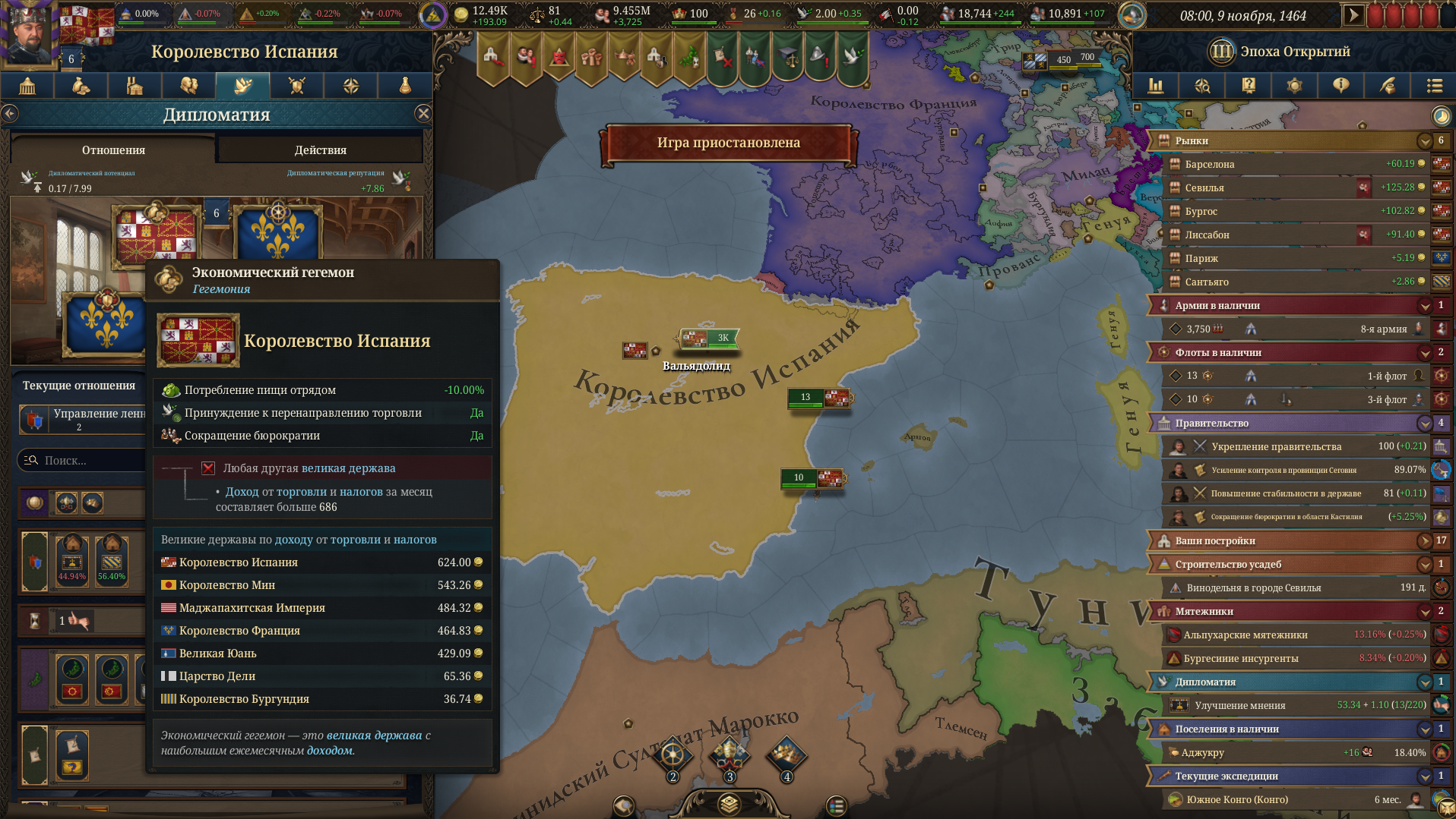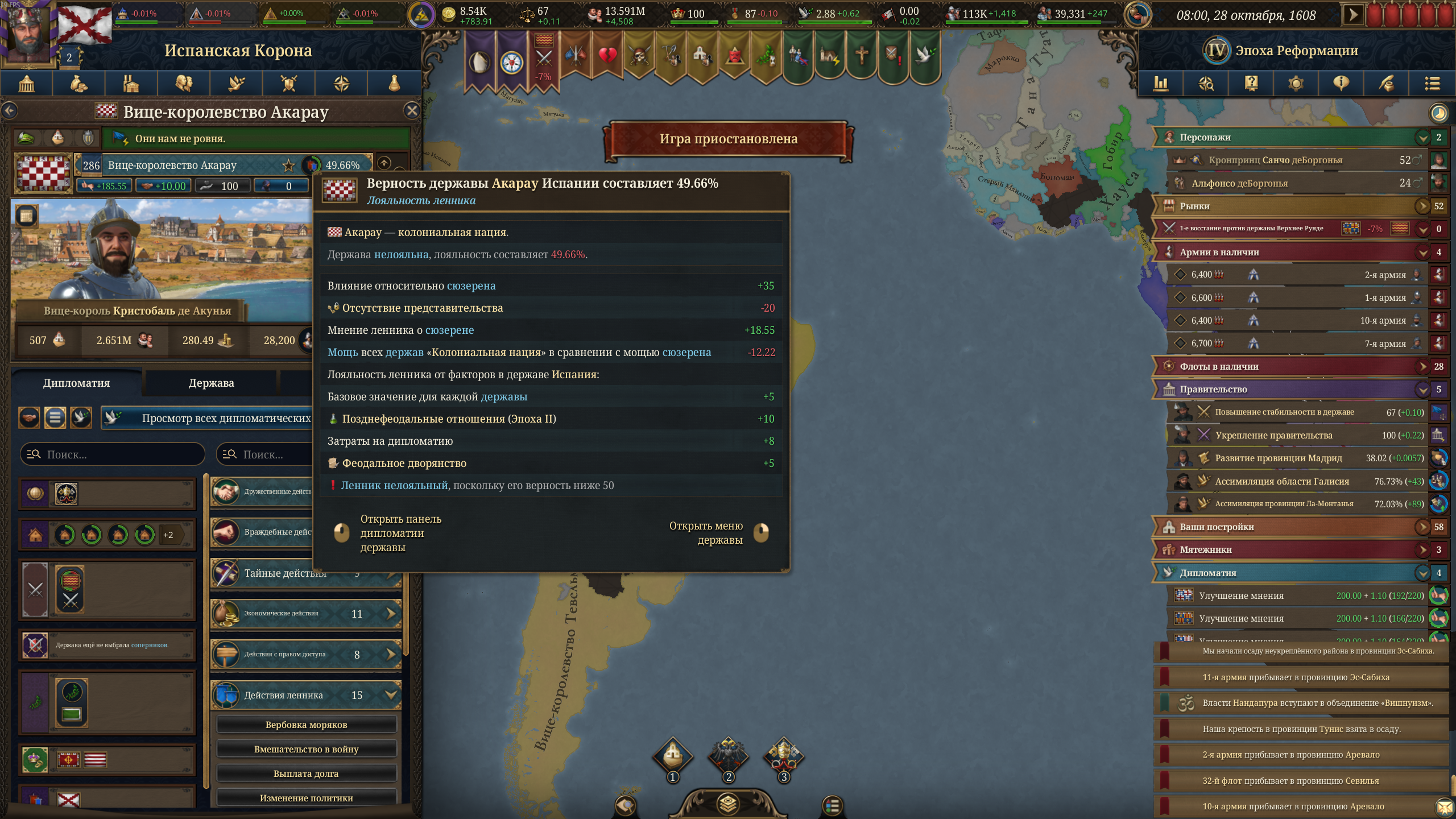 Бля, меня колонии уже обгоняют в мощи, не то что вассалы. Приходится повышать вложения в дипломатию, чтобы самому не ездить на все мятежи.